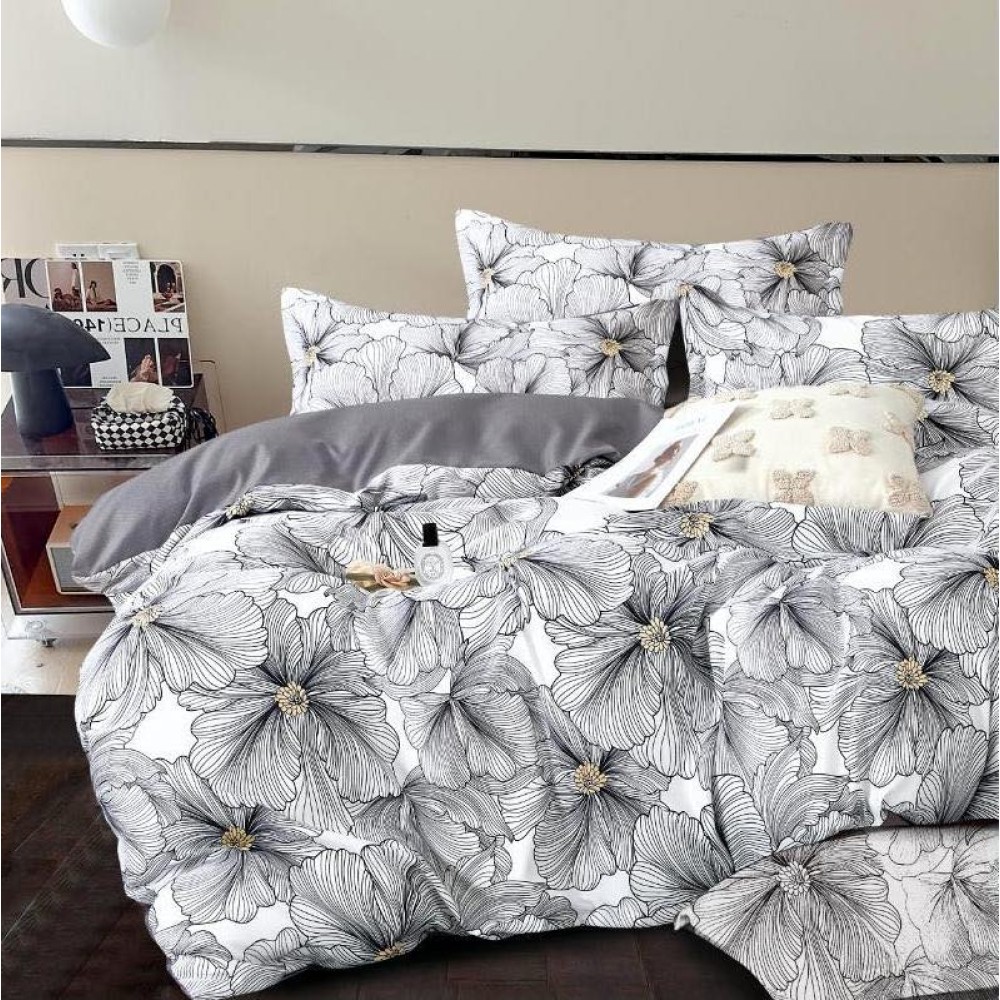Lenjerie pat dublu, FINET, 6 piese, Gri, flori, Johny Home Pucioasa, cod produs: SPR-R60-561