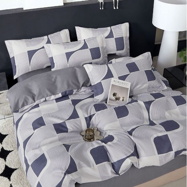Lenjerie pat dublu, FINET, 6 piese, Gri-Albastru, forme geometrice, Johny Home Pucioasa, cod produs: SPR-R60-568