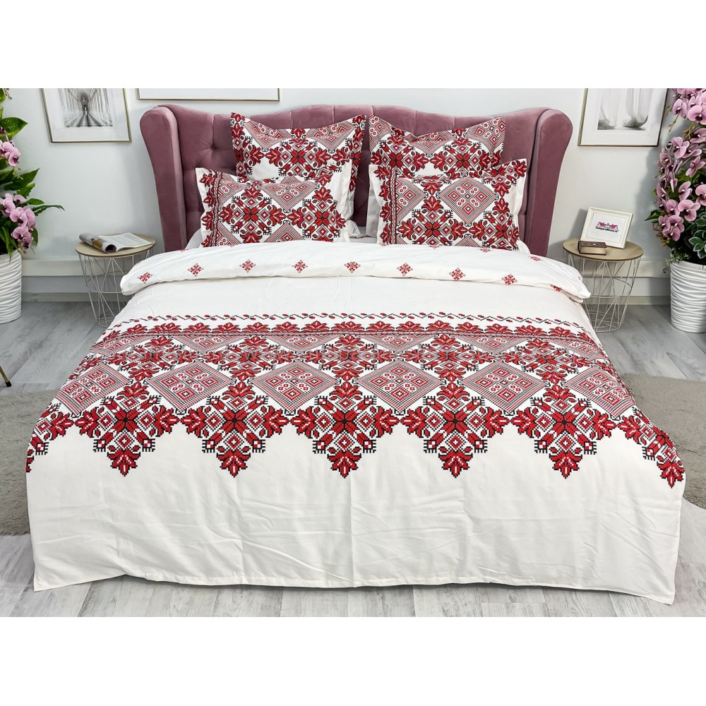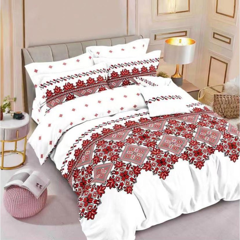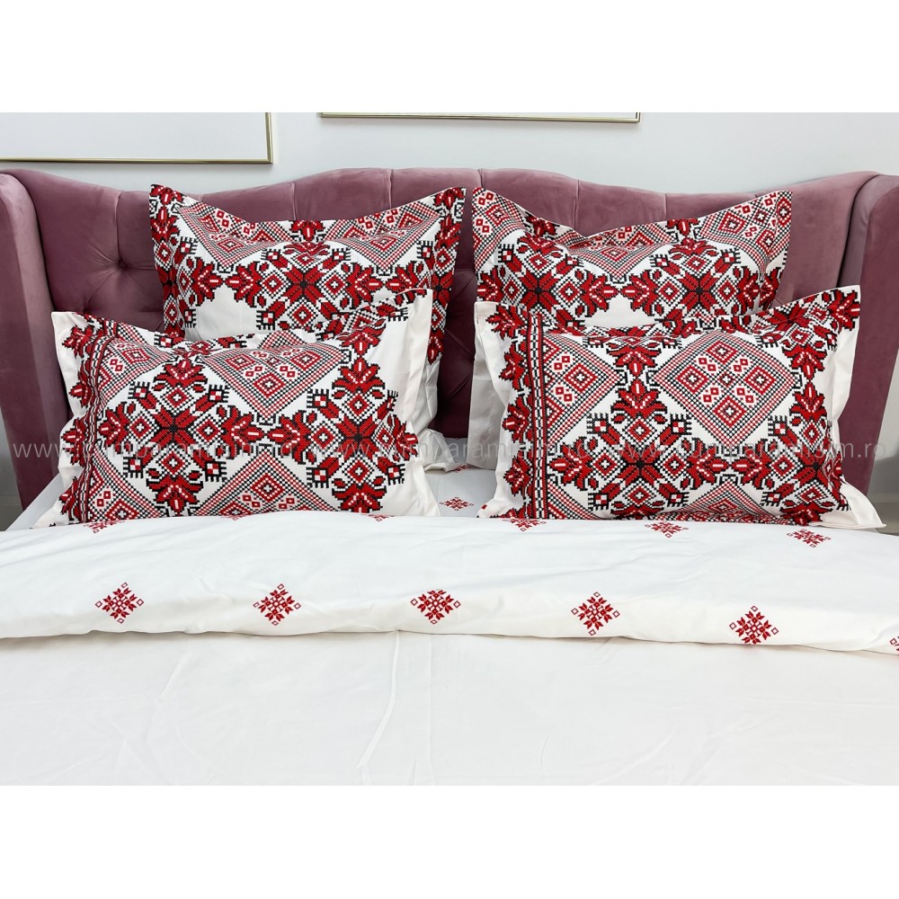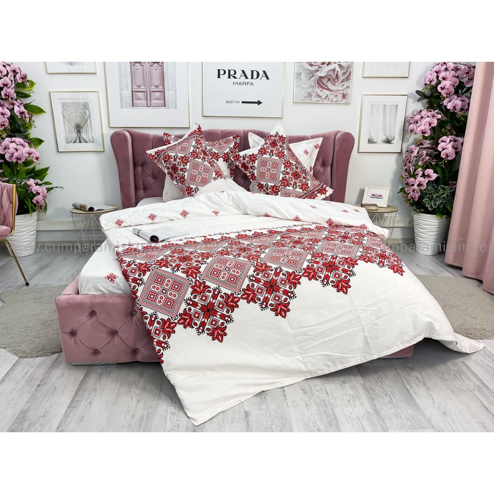 Lenjerie pat dublu, FINET, 6 piese, Alb-Rosu, model traditional, Johny Home Pucioasa, cod produs: SPR-R60-473