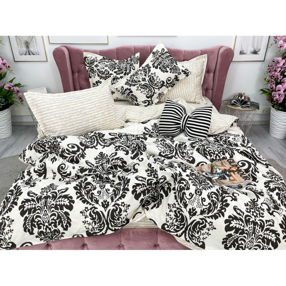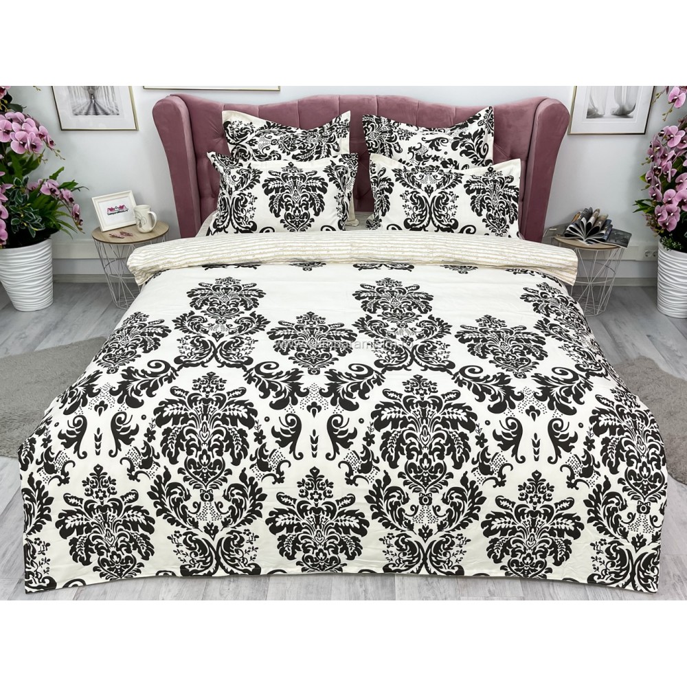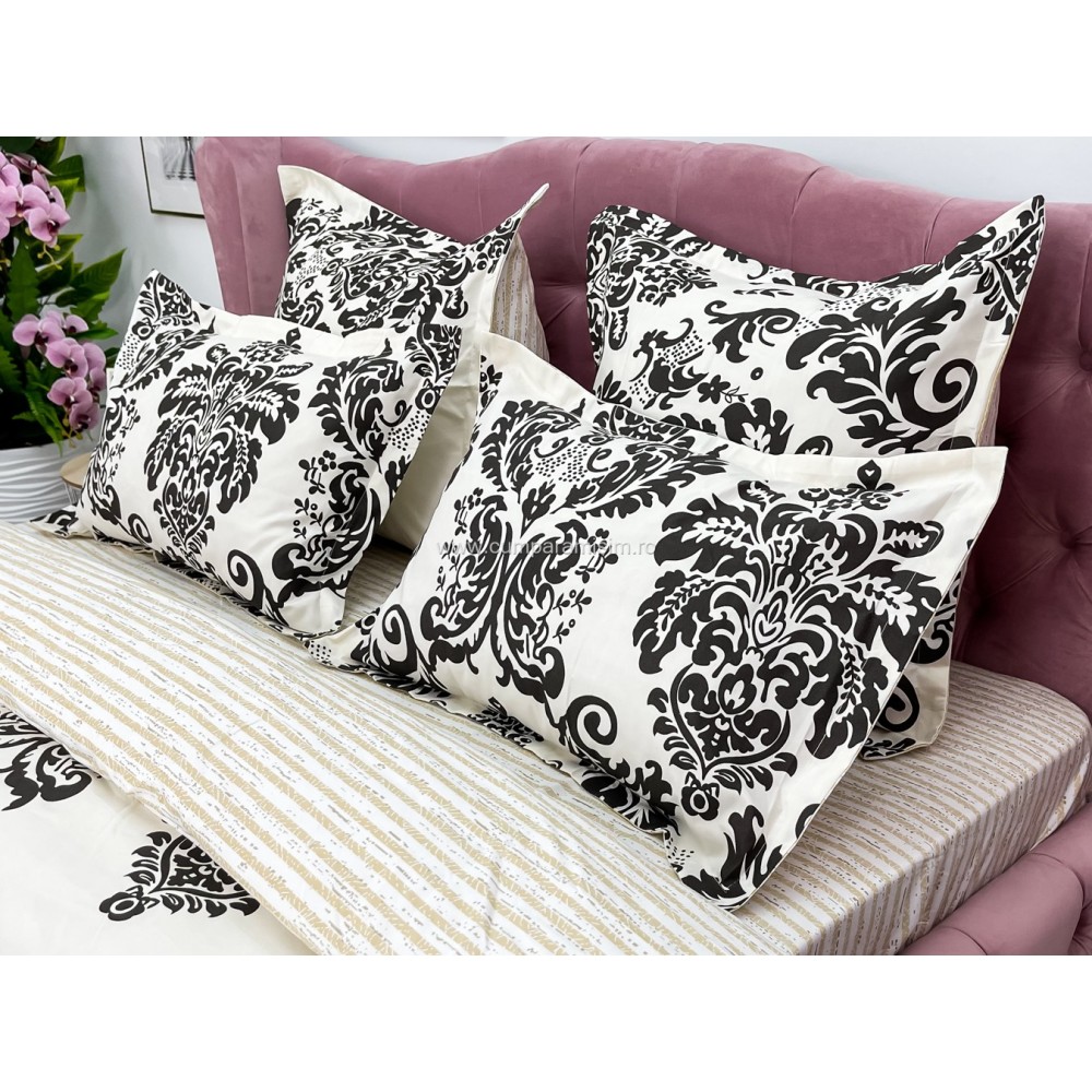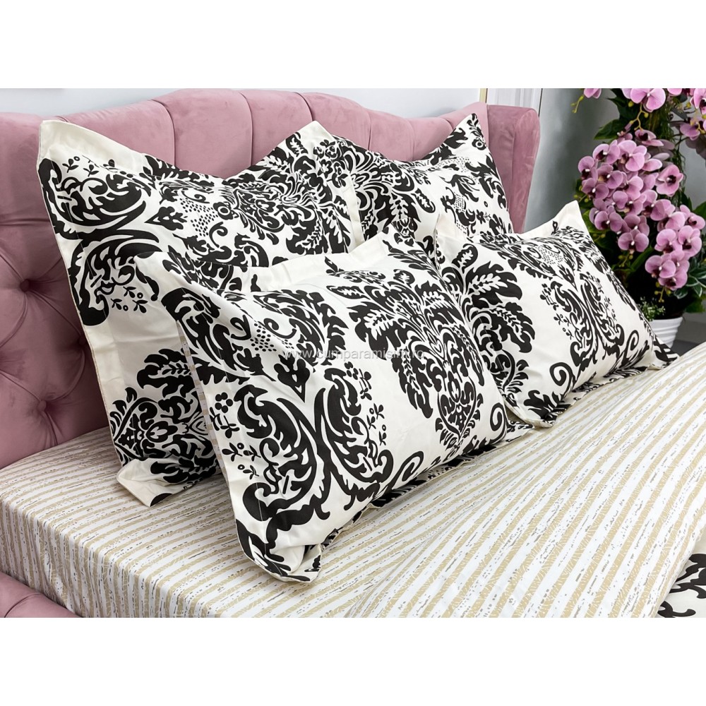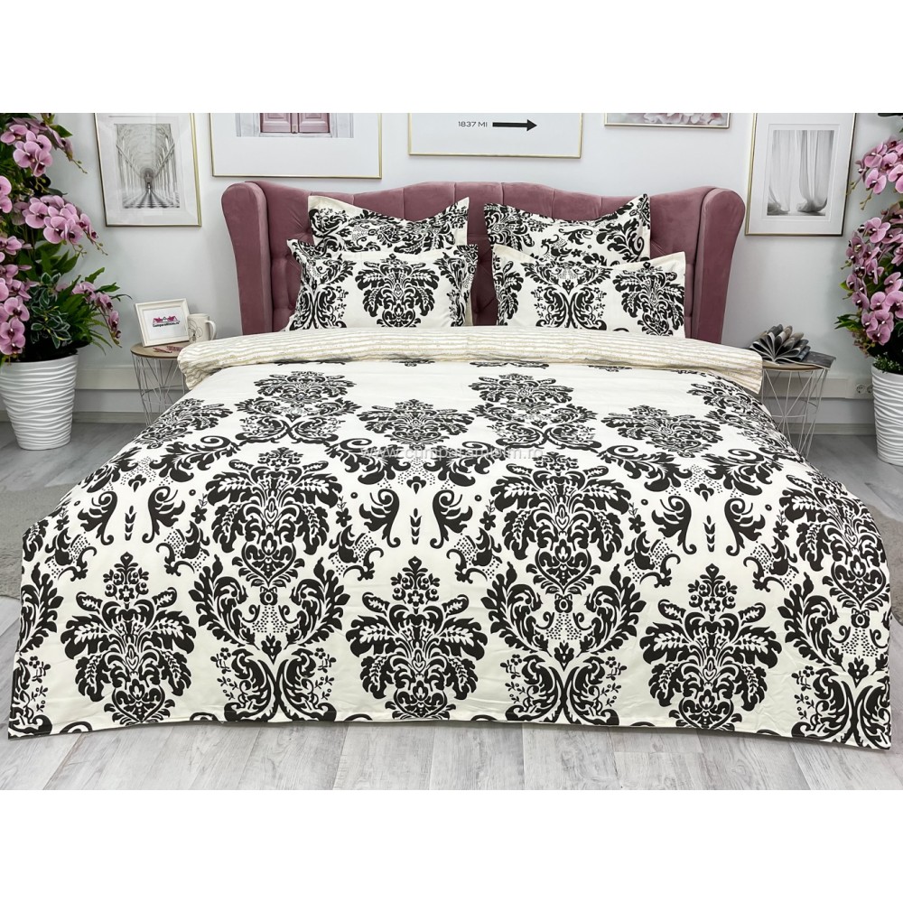 Lenjerie pat dublu, FINET, 6 piese, cu ELASTIC, Bej, model oriental, Johny Home Pucioasa, cod produs: SPR-T-109