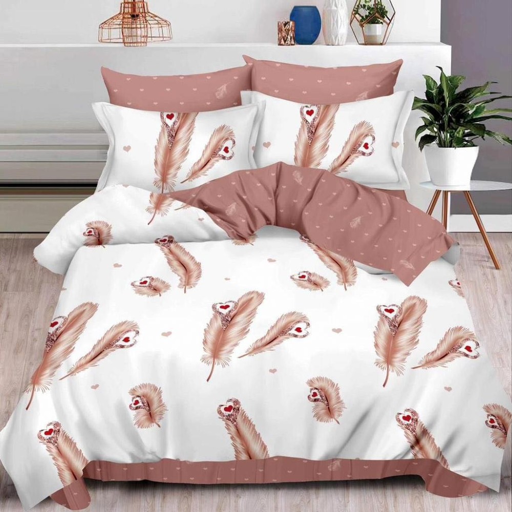 Lenjerie pat dublu, FINET, 6 piese, cu ELASTIC, Maro, pene, Johny Home Pucioasa, cod produs: SPR-T-155
