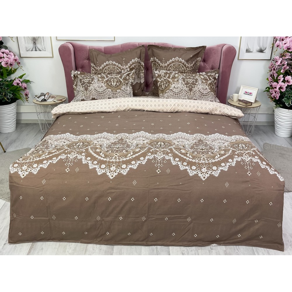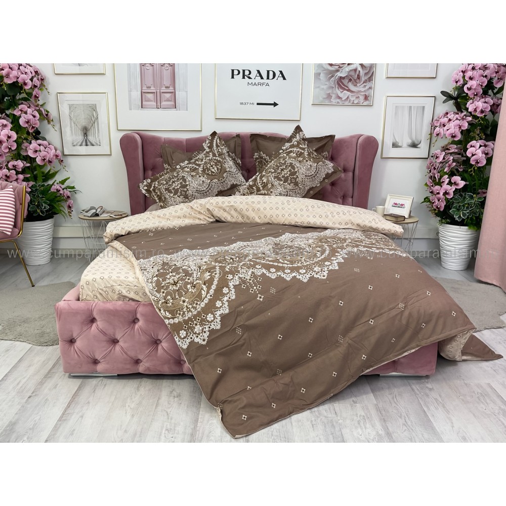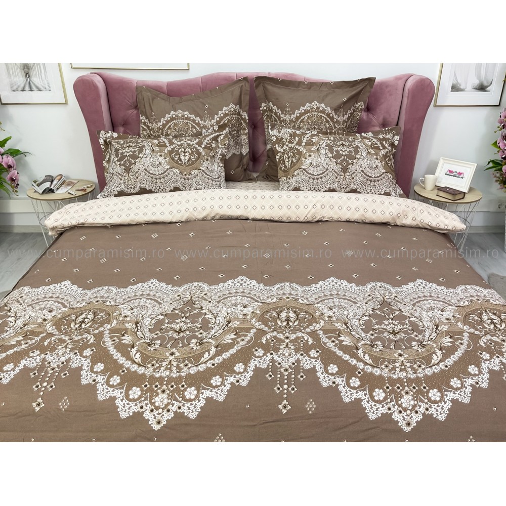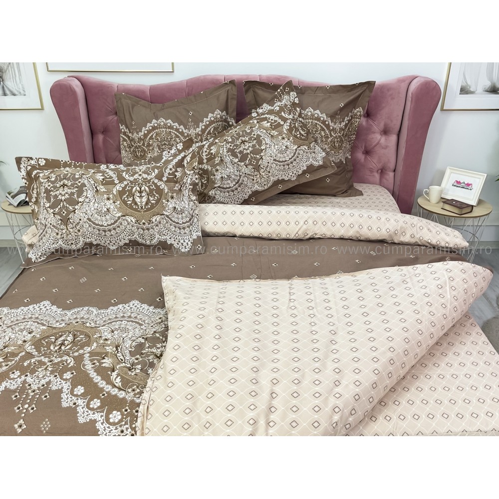 Lenjerie pat dublu, FINET, 6 piese, cu ELASTIC, Bej, oriental, Johny Home Pucioasa, cod produs: SPR-T-163