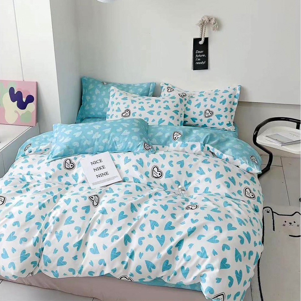 Lenjerie pat dublu, FINET, 6 piese, cu ELASTIC, Bleu, inimioare, Johny Home Pucioasa, cod produs: SPR-T-226