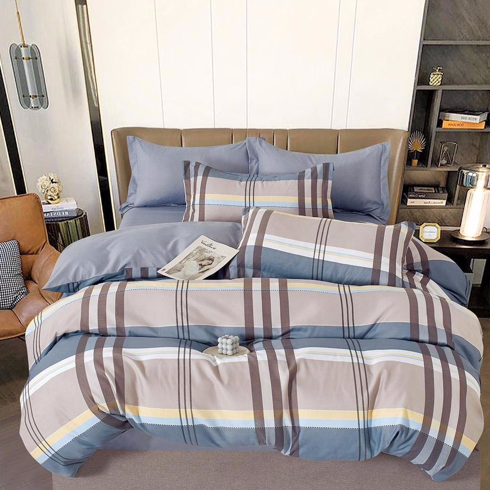 Lenjerie pat dublu, FINET, 6 piese, cu ELASTIC, Gri-Bej, carouri, Johny Home Pucioasa, cod produs: SPR-T-268
