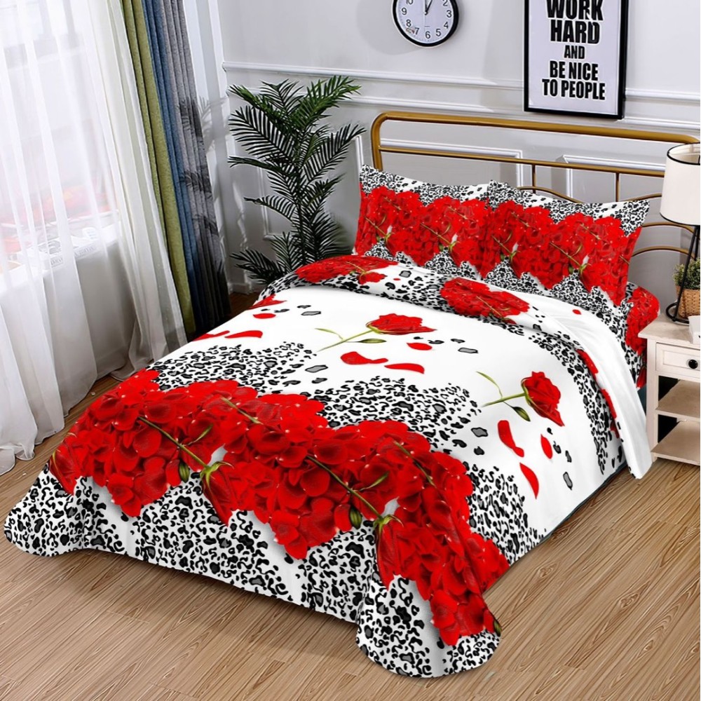 Lenjerie pat dublu, 4 piese, IMPRIMEU 3D Multiplicat Multiplicat, Microfibra, Rosu-Negru, animal print, trandafiri, Johny Home Pucioasa, cod produs: SPR-B-312
