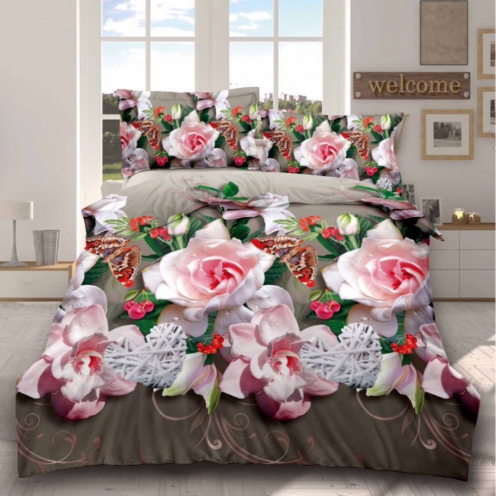 Lenjerie pat dublu, 4 piese, IMPRIMEU 3D Multiplicat Multiplicat, Microfibra, Grej-Roz, flori, fluturi, Johny Home Pucioasa, cod produs: SPR-B-444