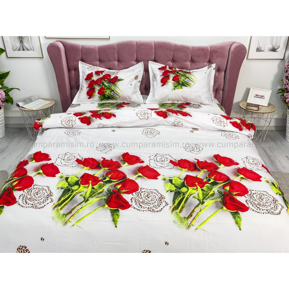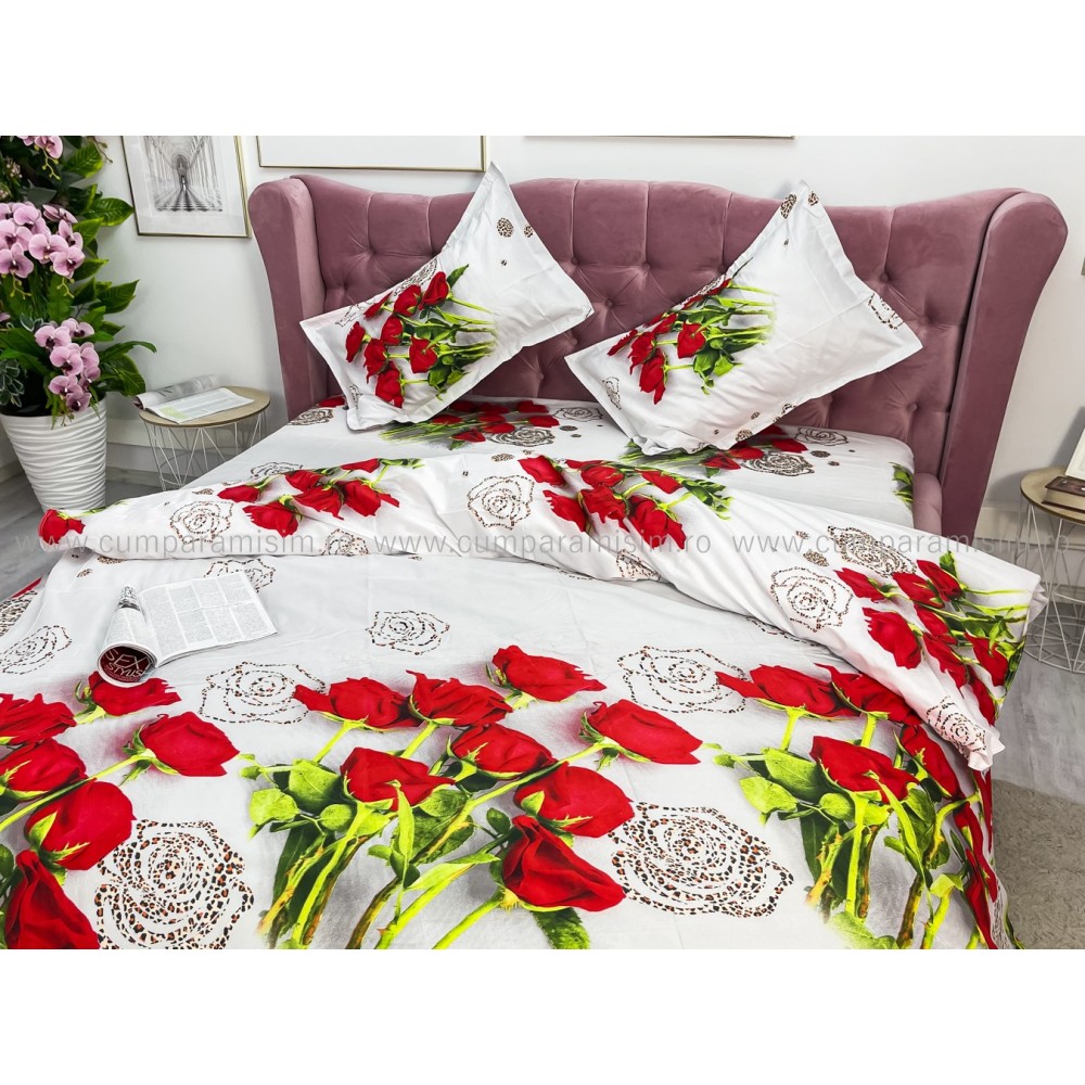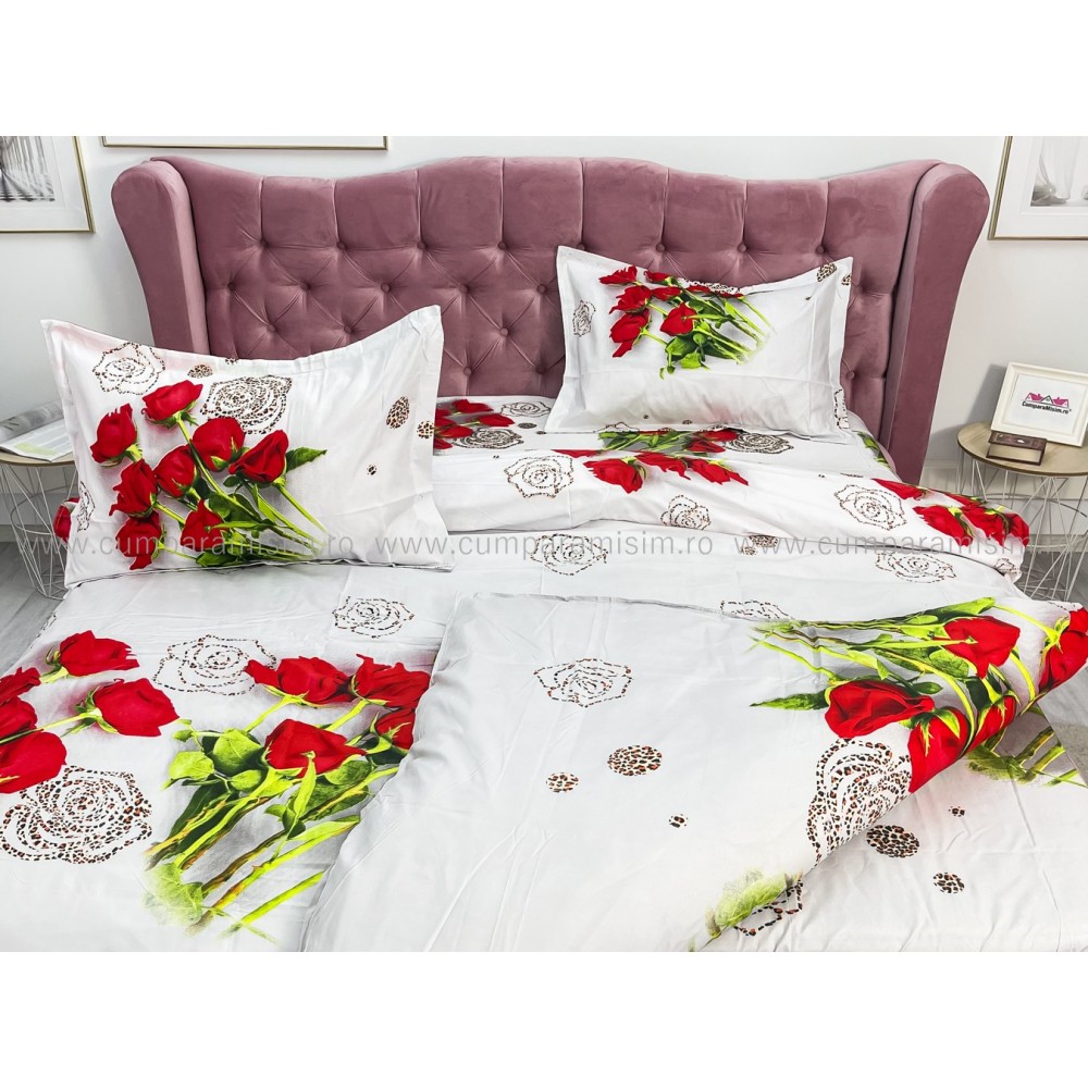 Lenjerie 3D pentru pat de 2 persoane, confectionata din microfibra, cu tesatura deasa, fina, placuta la atingere. Acest tip de imprimeu, este realizat cu o inovativa metoda de printare, astfel incat ofera senzatia ca imprimeul este in relief, datorita nuantelor folosite si combinate perfect, pentru ca dumneavoastra sa va puteti bucura de un asternut iesit din comun.