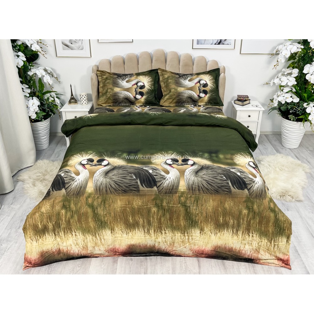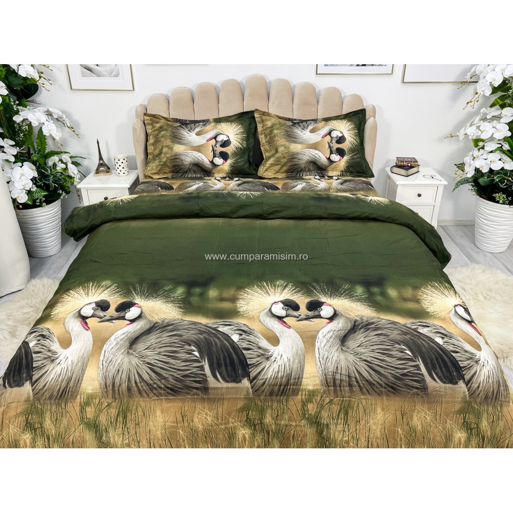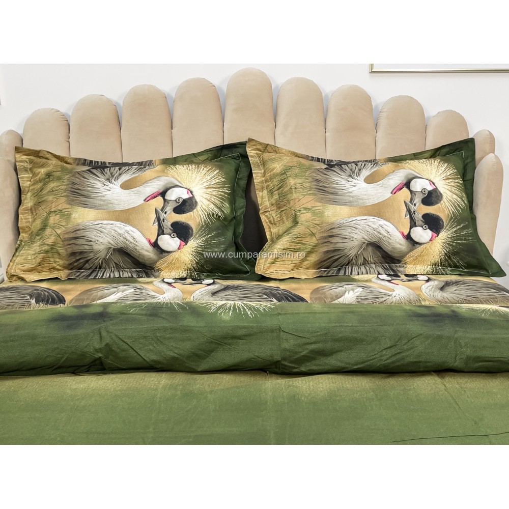 Lenjerie pat dublu, 4 piese, IMPRIMEU 3D Multiplicat, Microfibra, Gri, pasari, Johny Home Pucioasa, cod produs: SPR-B-499