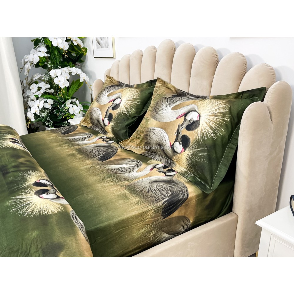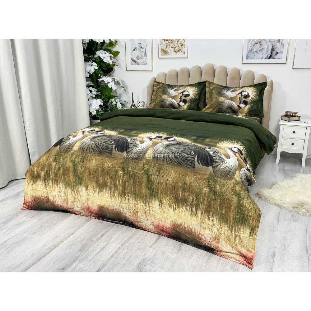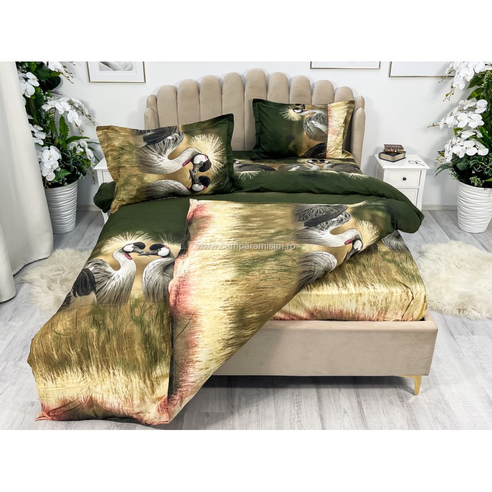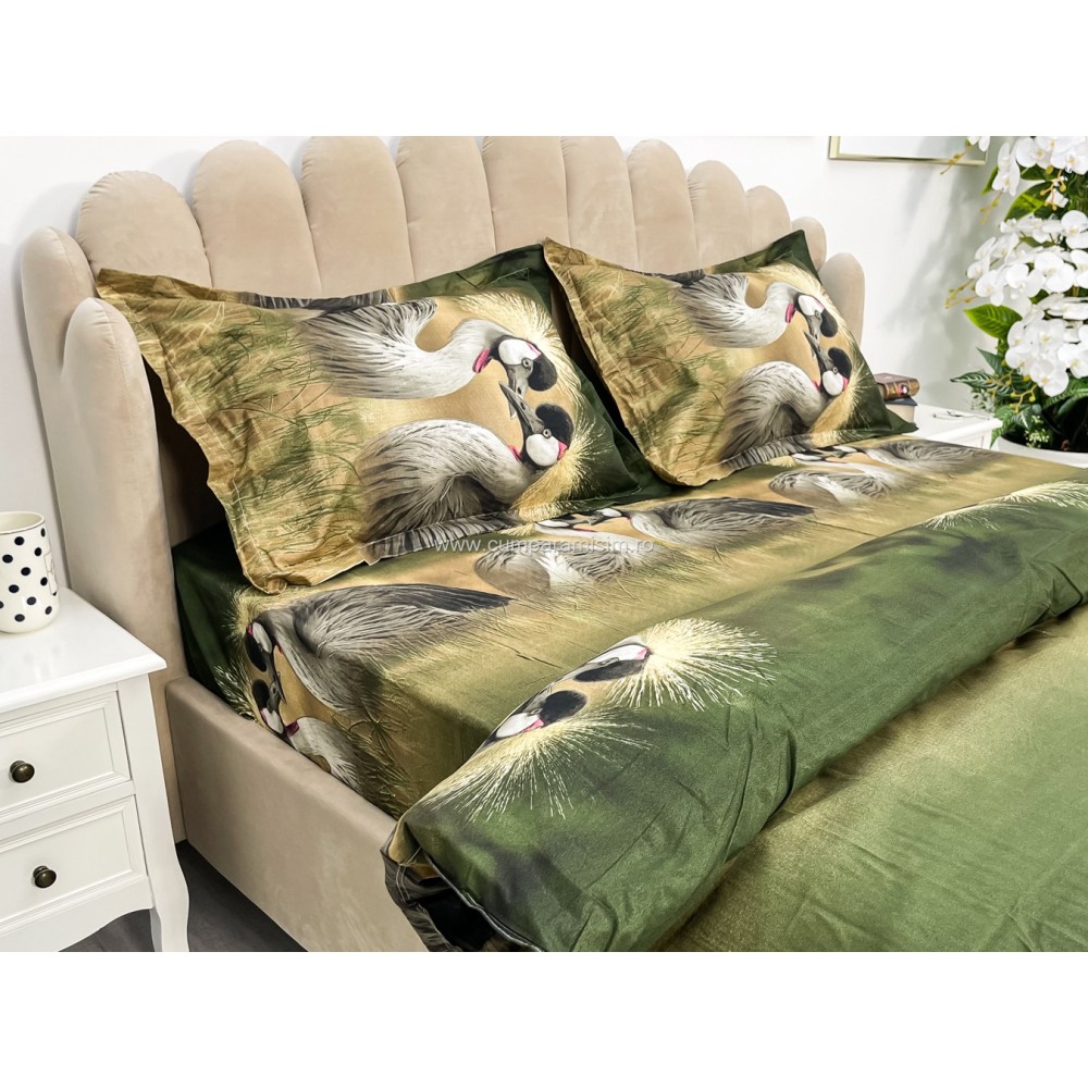 Lenjerie pat dublu, 4 piese, IMPRIMEU 3D Multiplicat, Microfibra, Gri, pasari, Johny Home Pucioasa, cod produs: SPR-B-499