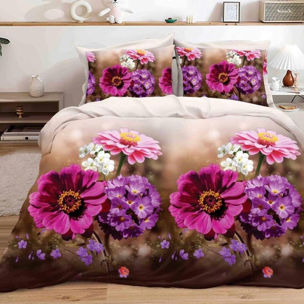 Lenjerie pat dublu, 4 piese, IMPRIMEU 3D Multiplicat Multiplicat, Microfibra, Mov, flori, Johny Home Pucioasa, cod produs: SPR-B-590
