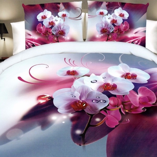 Lenjerie pat dublu, 4 piese, IMPRIMEU 3D Multiplicat Multiplicat, Microfibra, Roz, orhidee, Johny Home Pucioasa, cod produs: SPR-B-86