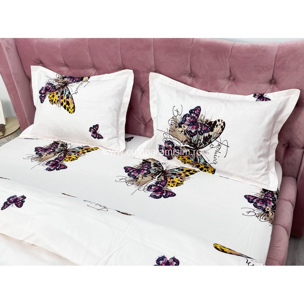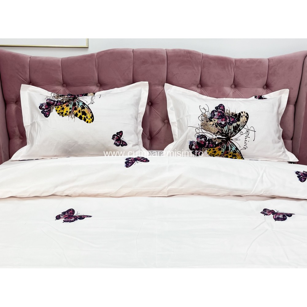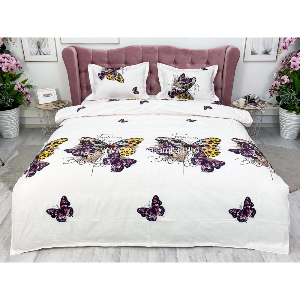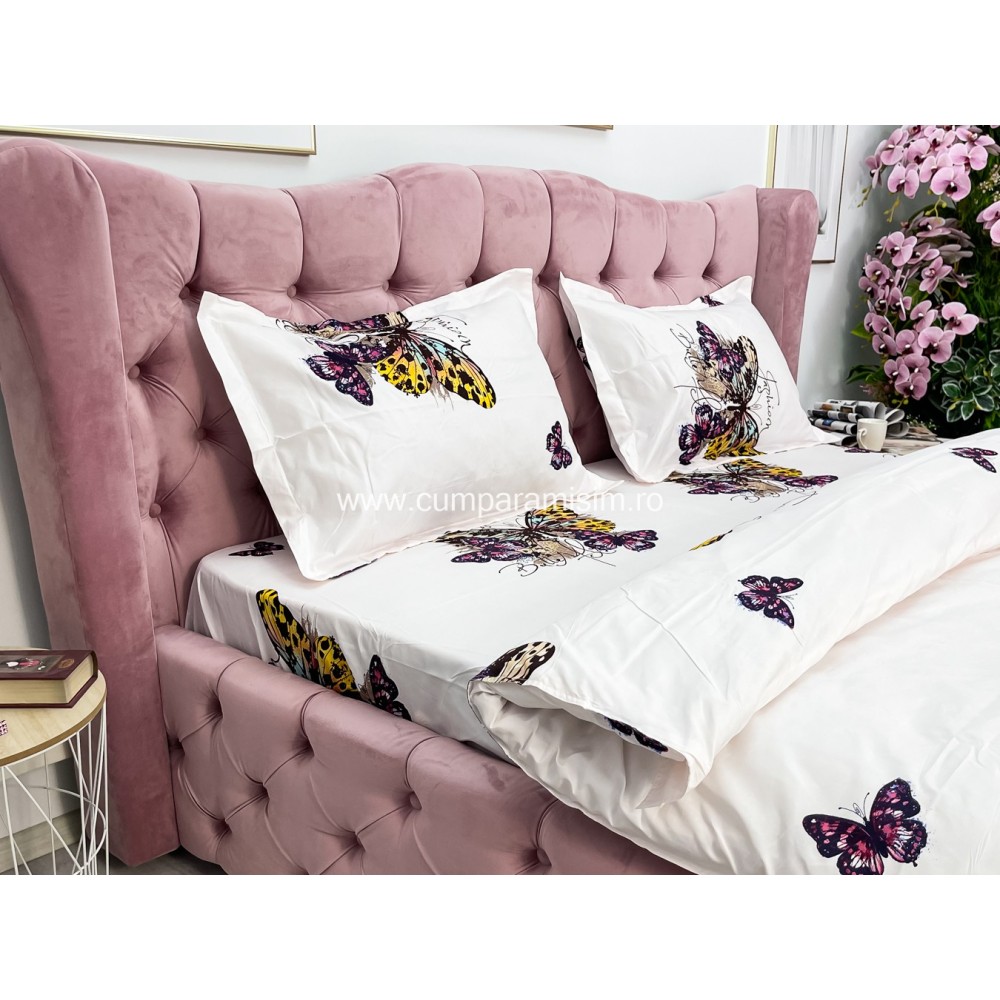 Lenjerie pat dublu, 4 piese, IMPRIMEU 3D Multiplicat, Microfibra, Mov, fluturi, Johny Home Pucioasa, cod produs: SPR-B-477