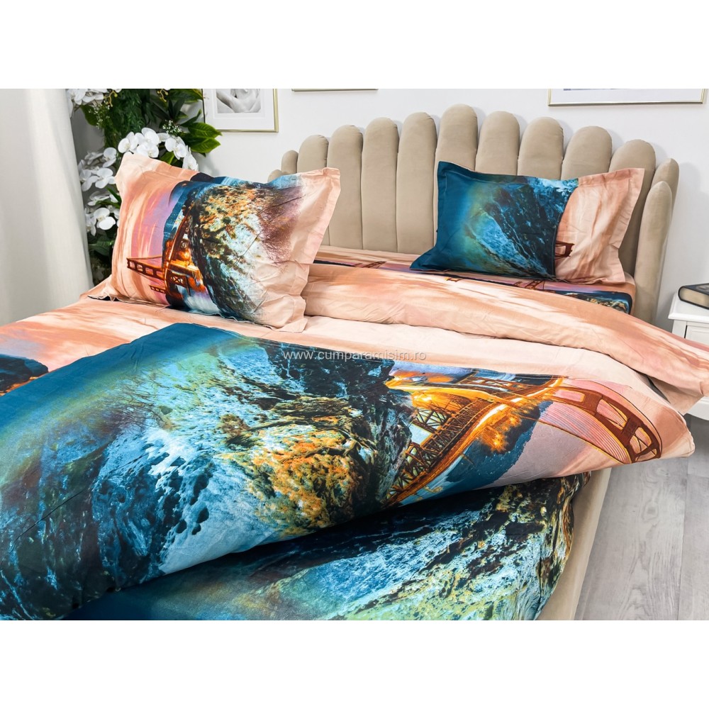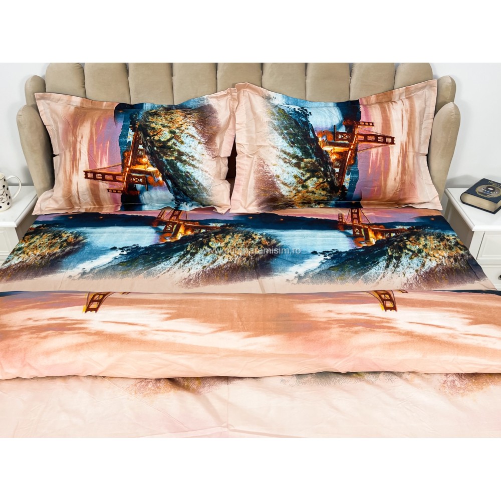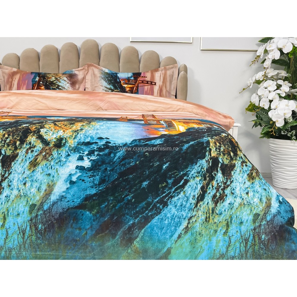 Lenjerie 3D pentru pat de 2 persoane, confectionata din microfibra, cu tesatura deasa, fina, placuta la atingere. Acest tip de imprimeu, este realizat cu o inovativa metoda de printare, astfel incat ofera senzatia ca imprimeul este in relief, datorita nuantelor folosite si combinate perfect, pentru ca dumneavoastra sa va puteti bucura de un asternut iesit din comun.