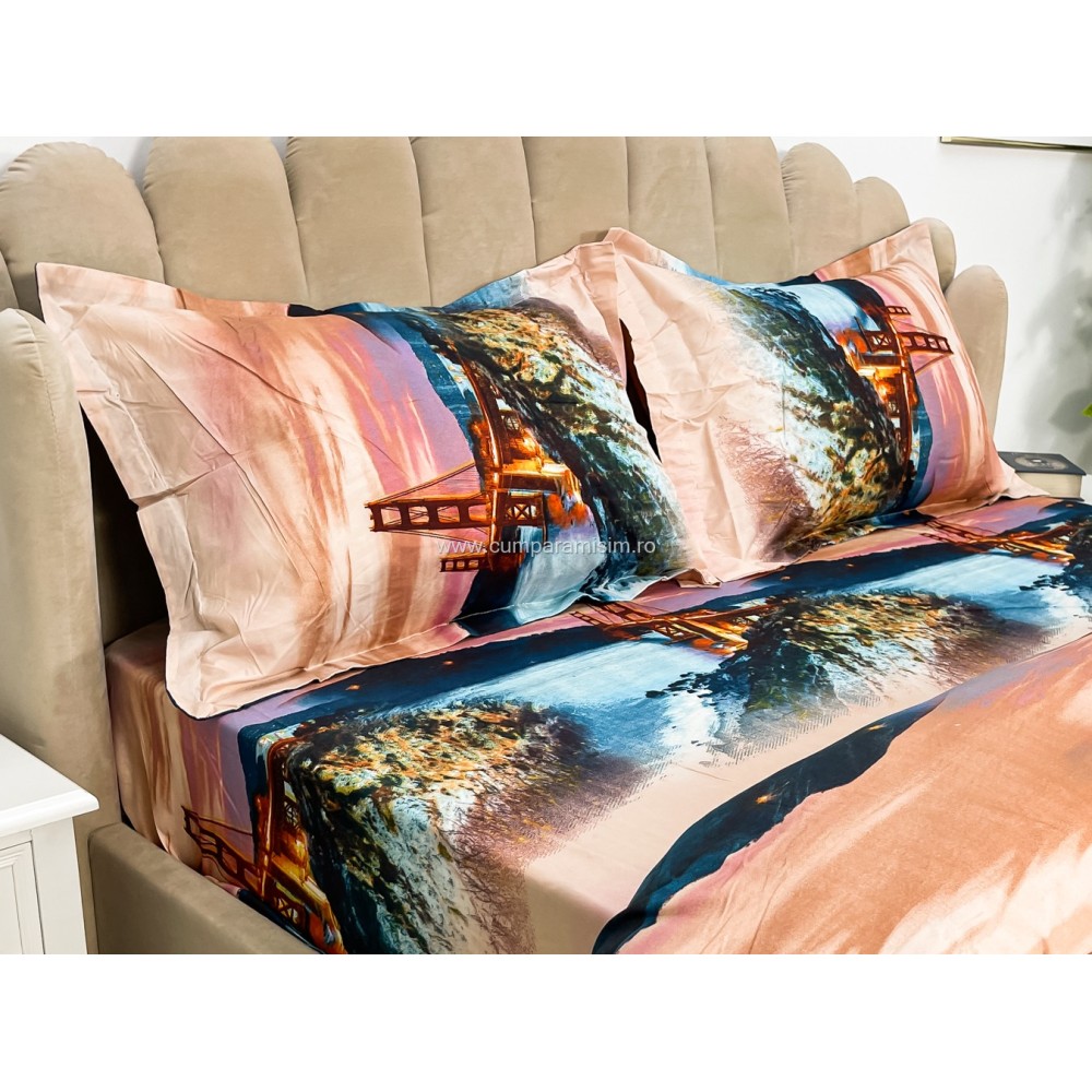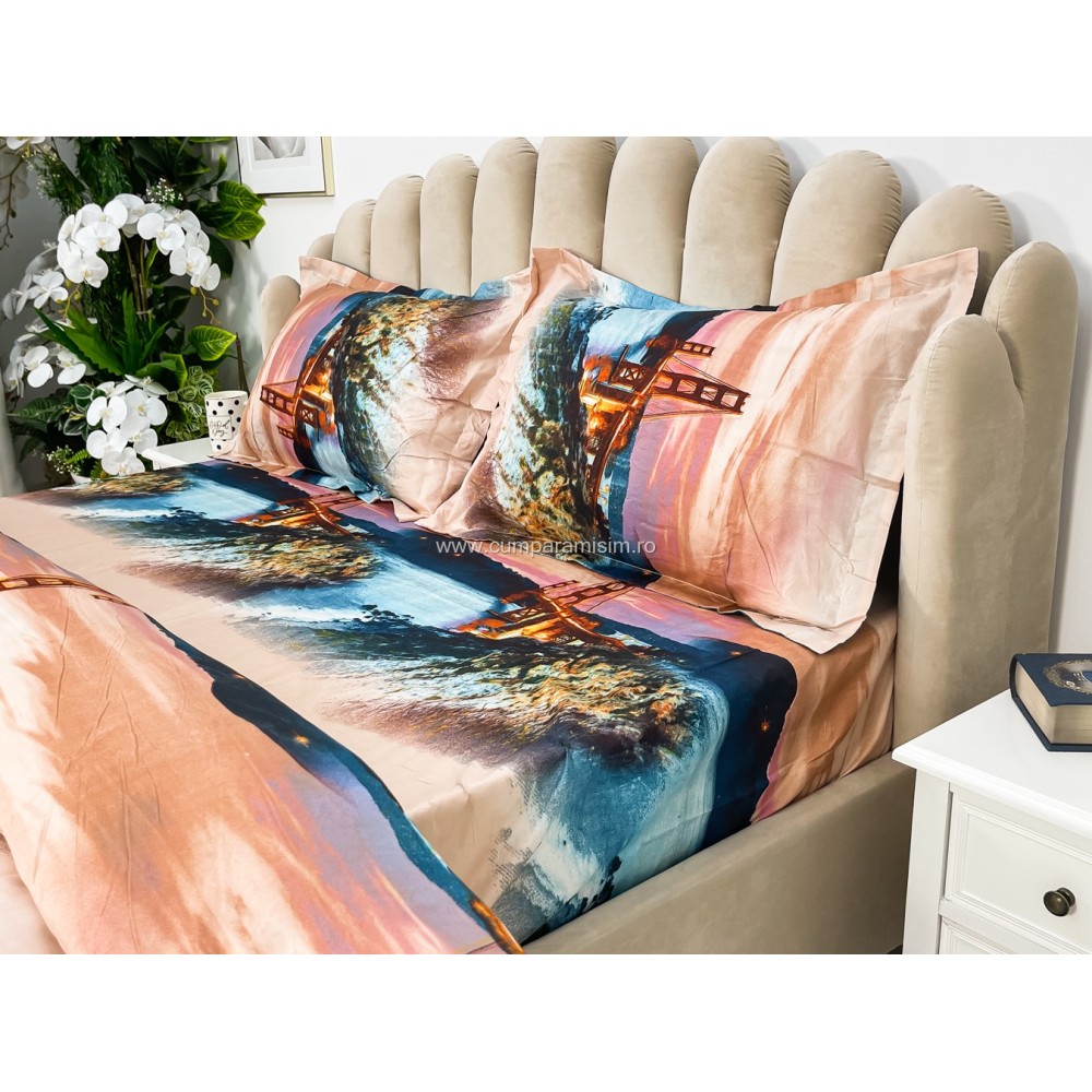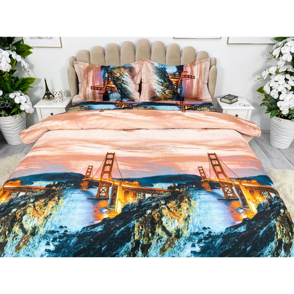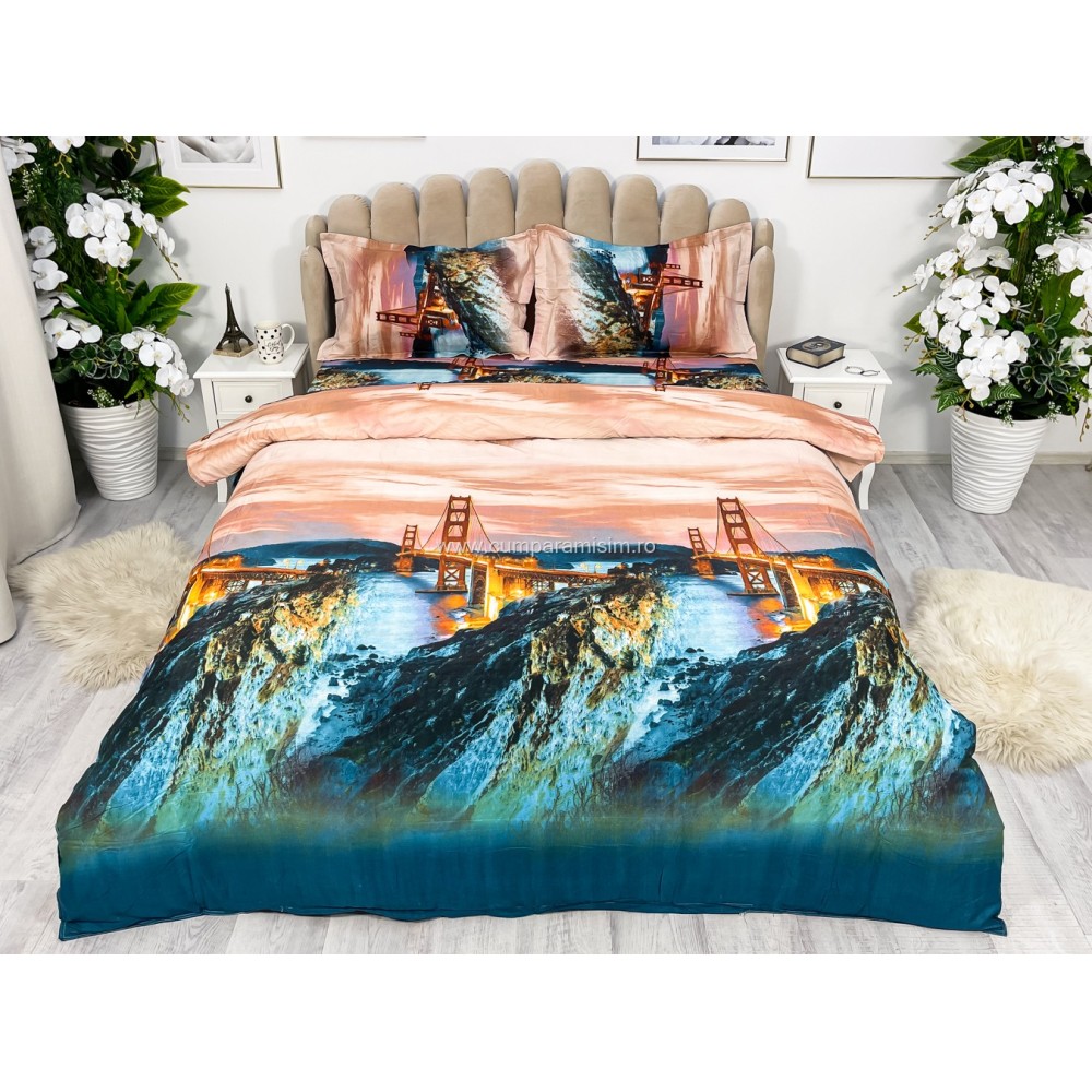 Lenjerie 3D pentru pat de 2 persoane, confectionata din microfibra, cu tesatura deasa, fina, placuta la atingere. Acest tip de imprimeu, este realizat cu o inovativa metoda de printare, astfel incat ofera senzatia ca imprimeul este in relief, datorita nuantelor folosite si combinate perfect, pentru ca dumneavoastra sa va puteti bucura de un asternut iesit din comun.
