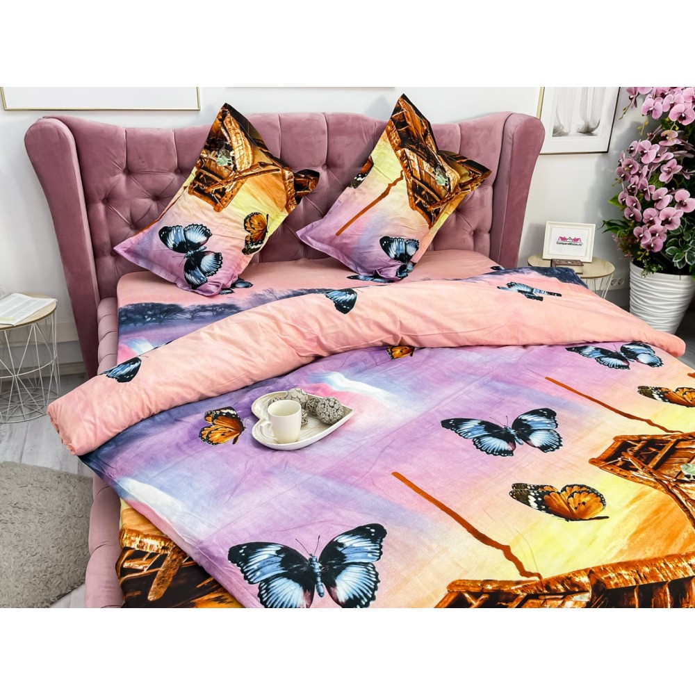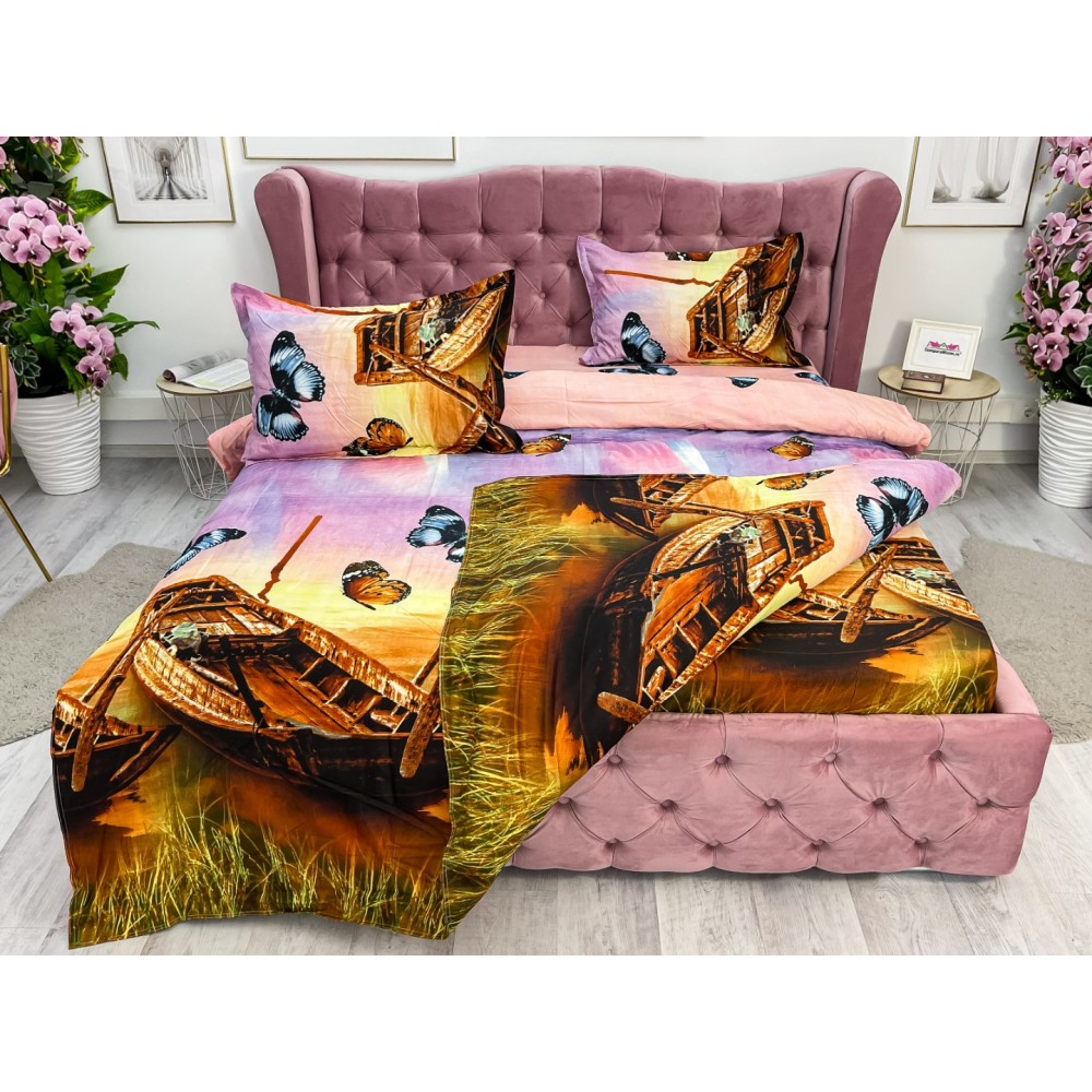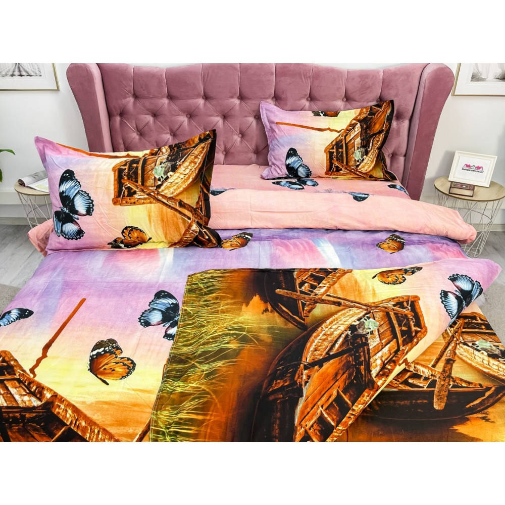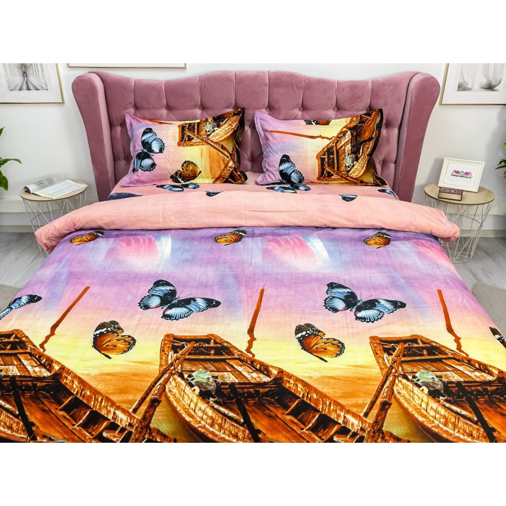 Lenjerie pat dublu, 4 piese, IMPRIMEU 3D Multiplicat, Microfibra, Maro, barci, fluturi, Johny Home Pucioasa, cod produs: SPR-B-522
