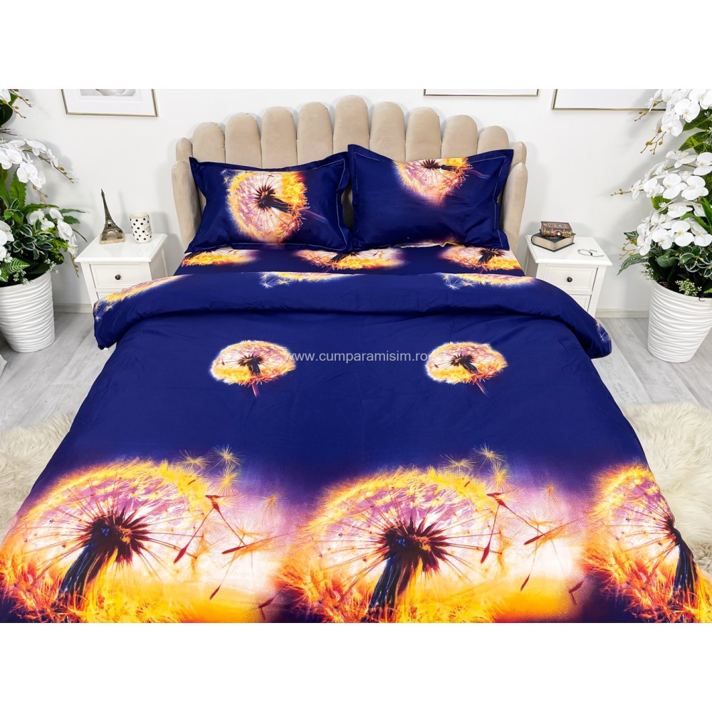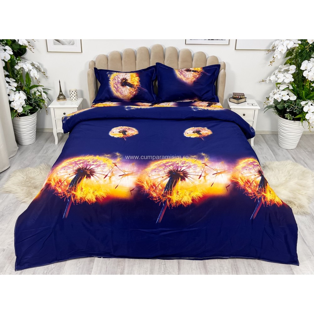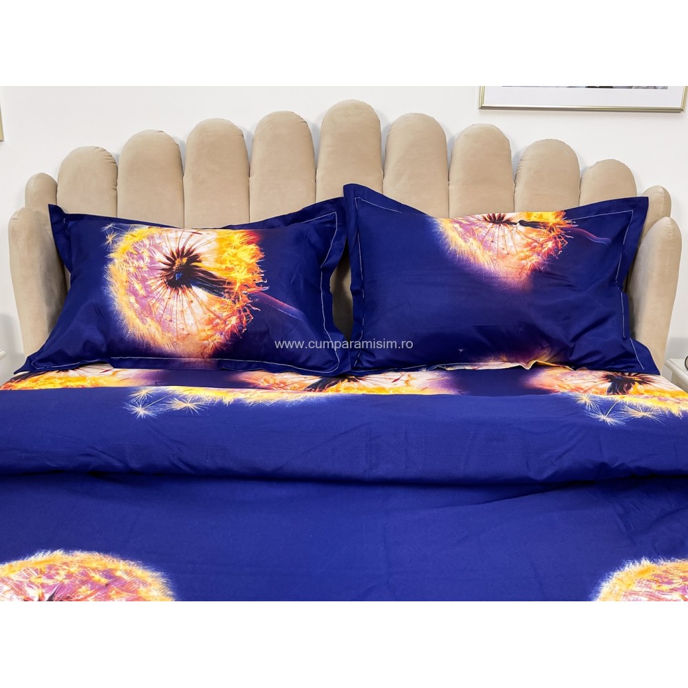 Lenjerie pat dublu, 4 piese, IMPRIMEU 3D Multiplicat, Microfibra, Mov, papadii, Johny Home Pucioasa, cod produs: SPR-B-527