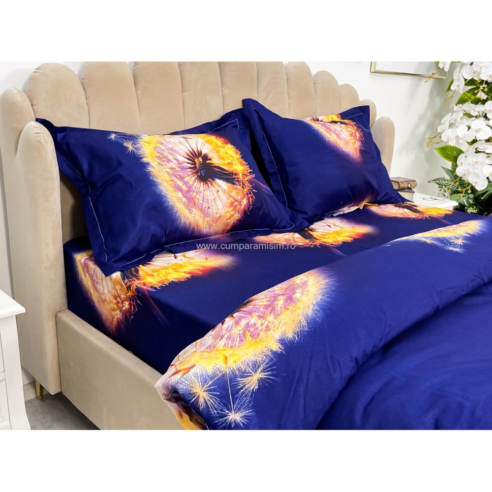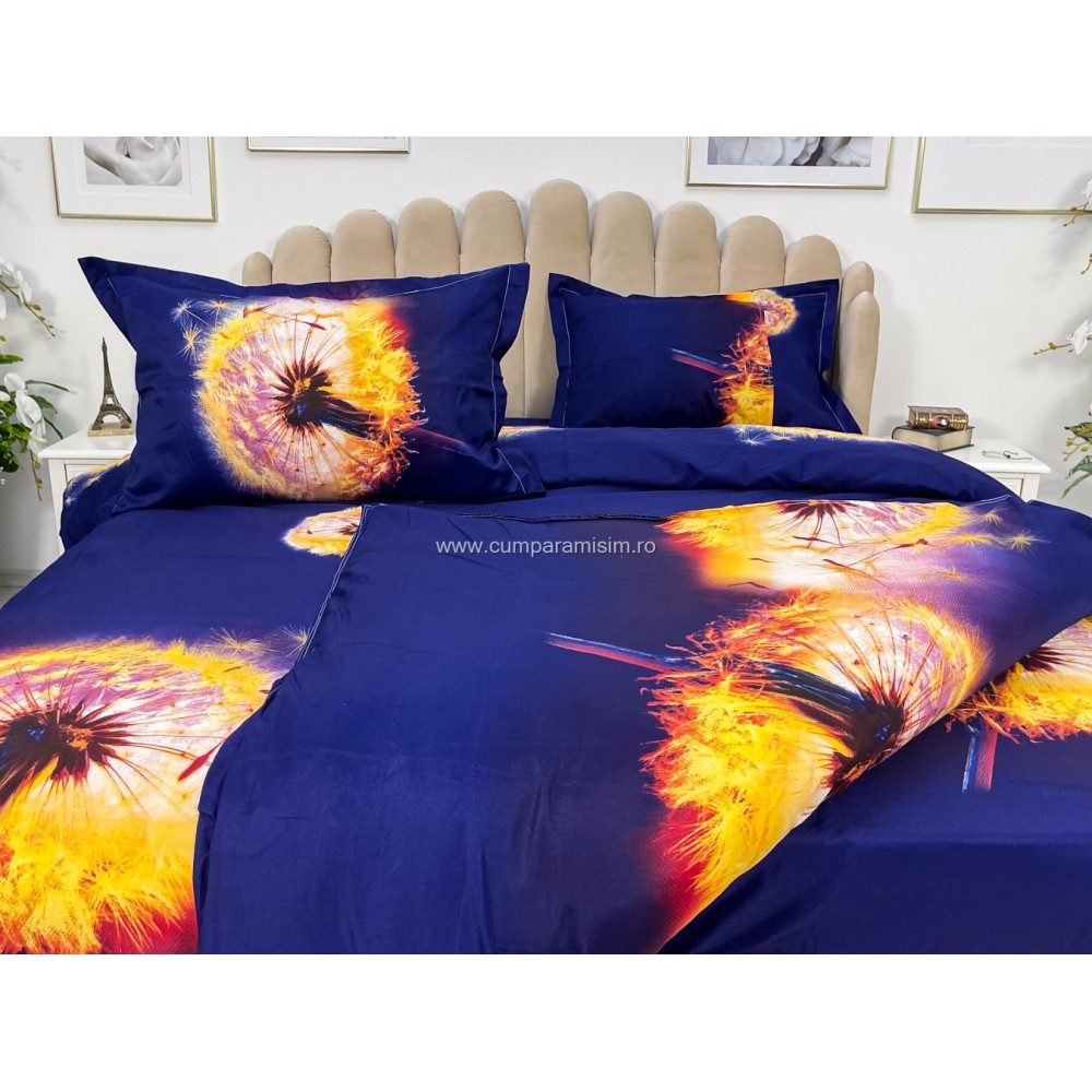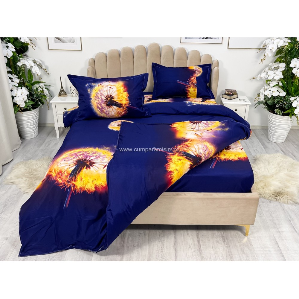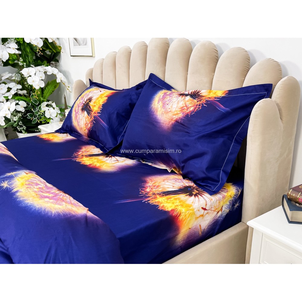 Lenjerie pat dublu, 4 piese, IMPRIMEU 3D Multiplicat, Microfibra, Mov, papadii, Johny Home Pucioasa, cod produs: SPR-B-527