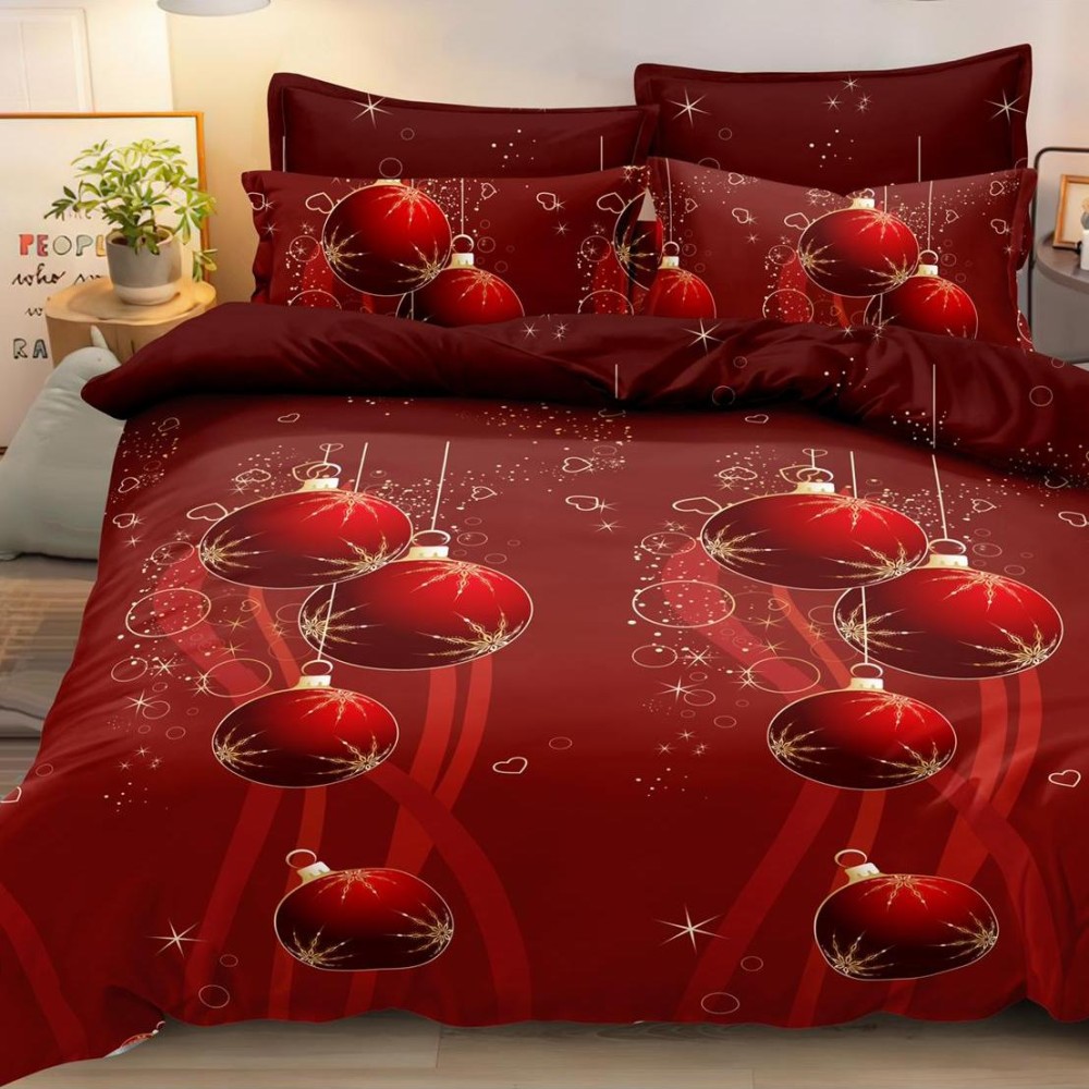 Lenjerie pat dublu, FINET, 6 piese, Craciun, Rosu, CumparaMisim, cod produs: SPR-Q60-29