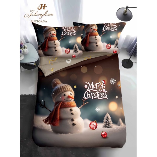 Lenjerie pat 1 PERSOANA, BUMBAC FINET, 4 piese, Identică cu Poza, Craciun, Multicolor, om de zăpadă, Johny Home Pucioasa, cod produs: SPR-Qy-07