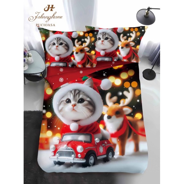 Lenjerie de pat single pentru Crăciun din bumbac 100% finet - Confort și Eleganță Festivă