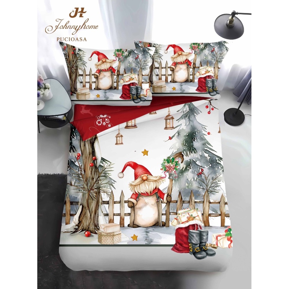 Lenjerie de pat single pentru Crăciun din bumbac 100% finet - Confort și Eleganță Festivă