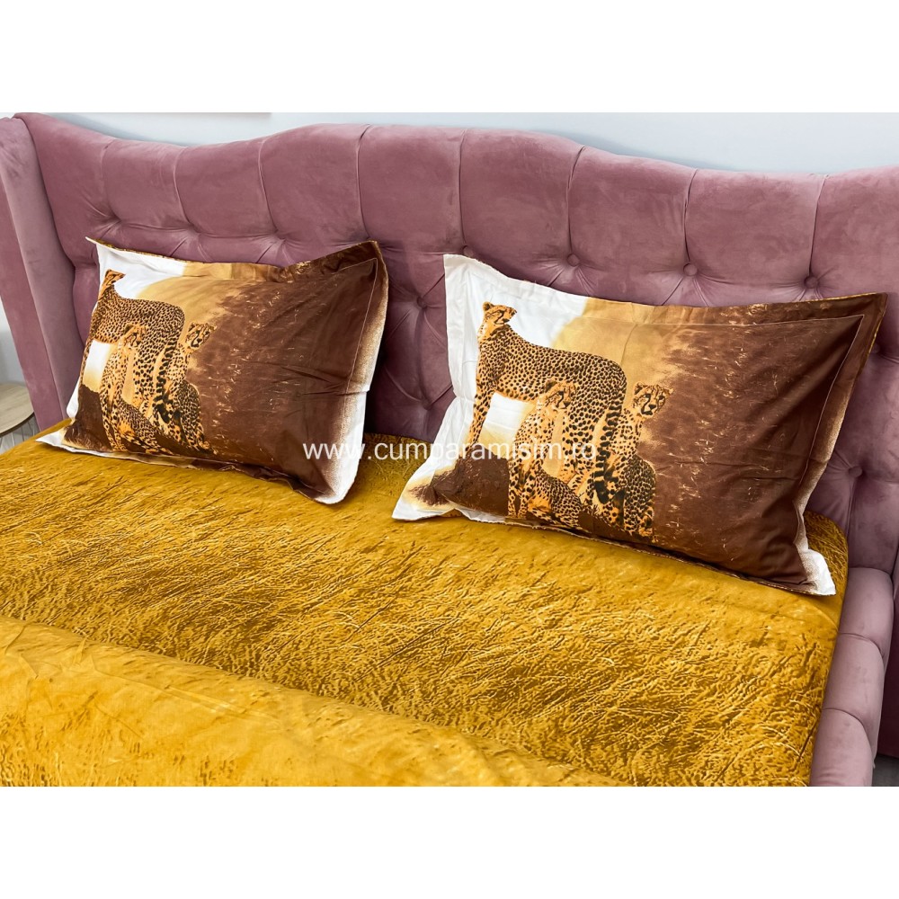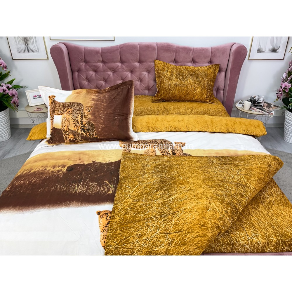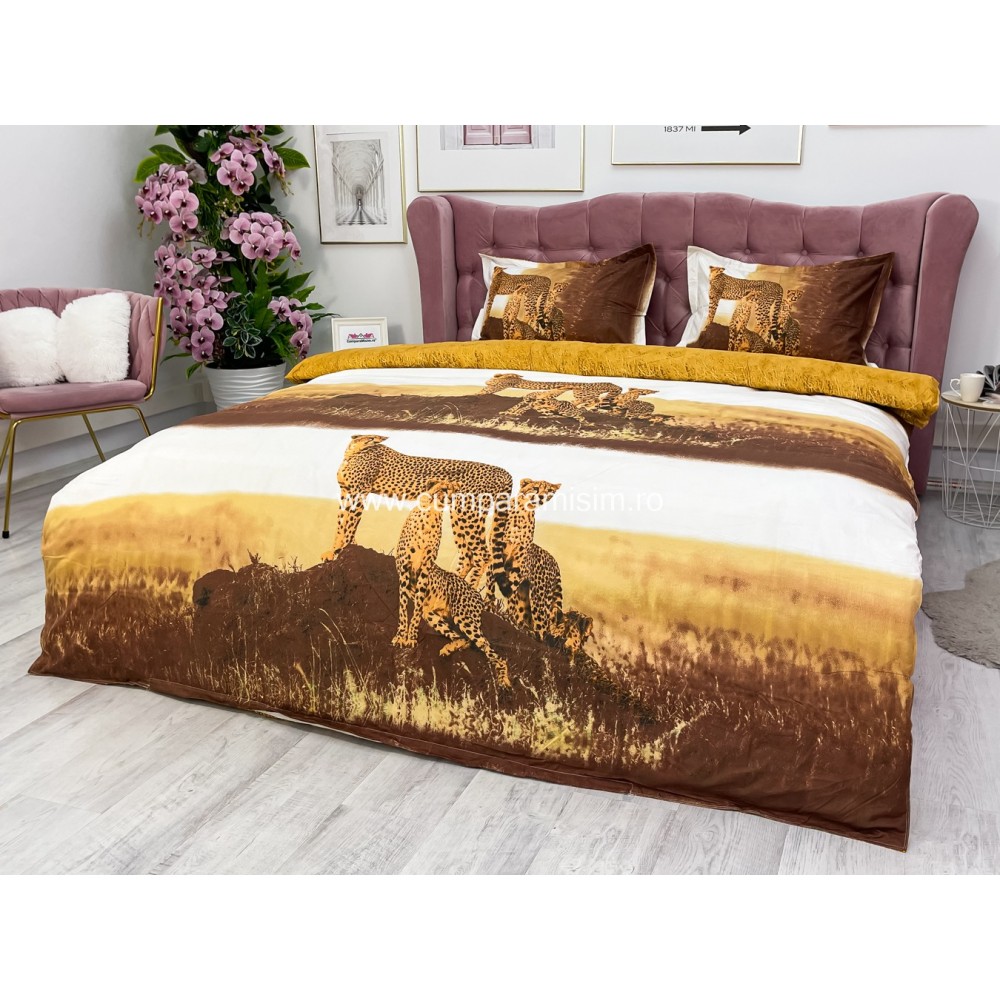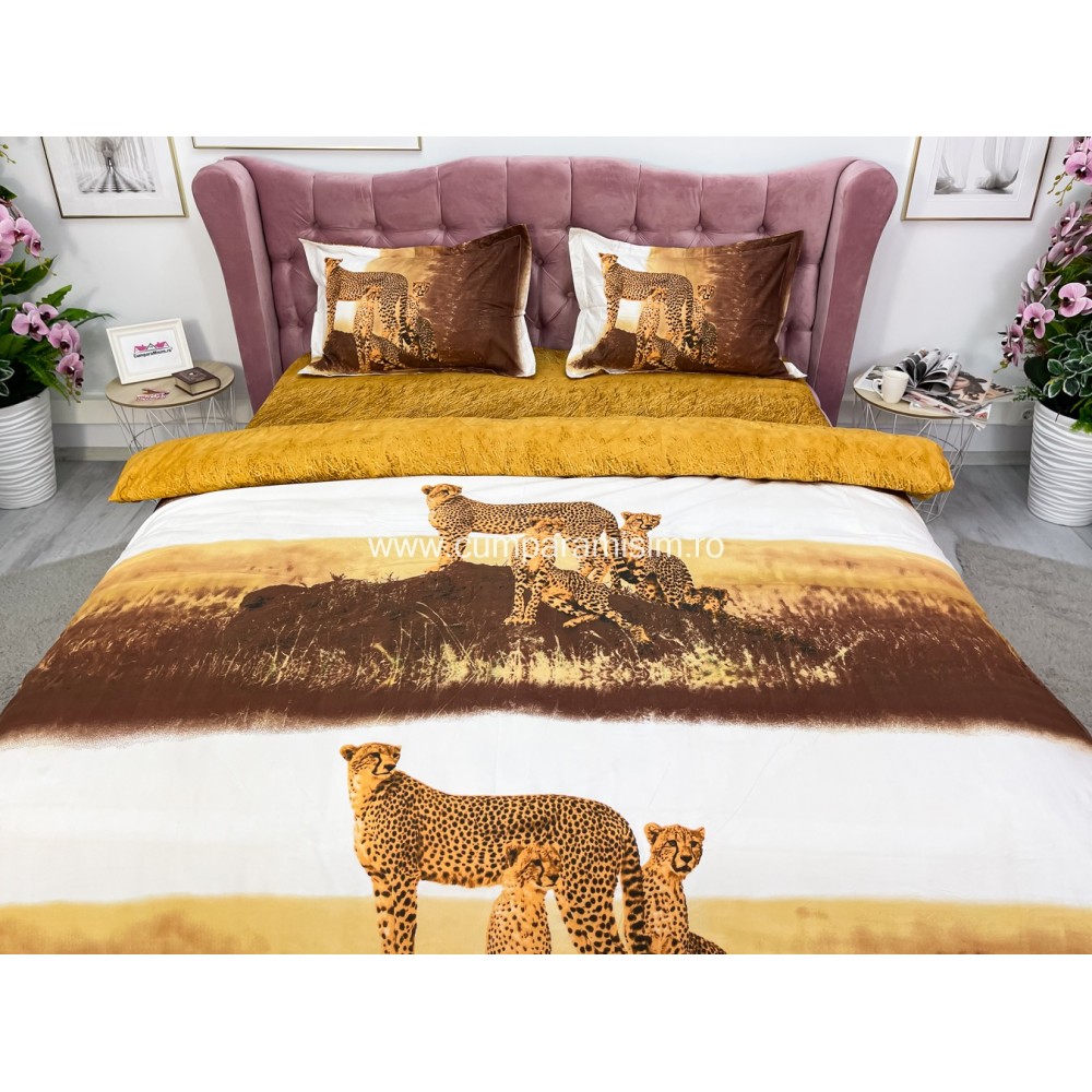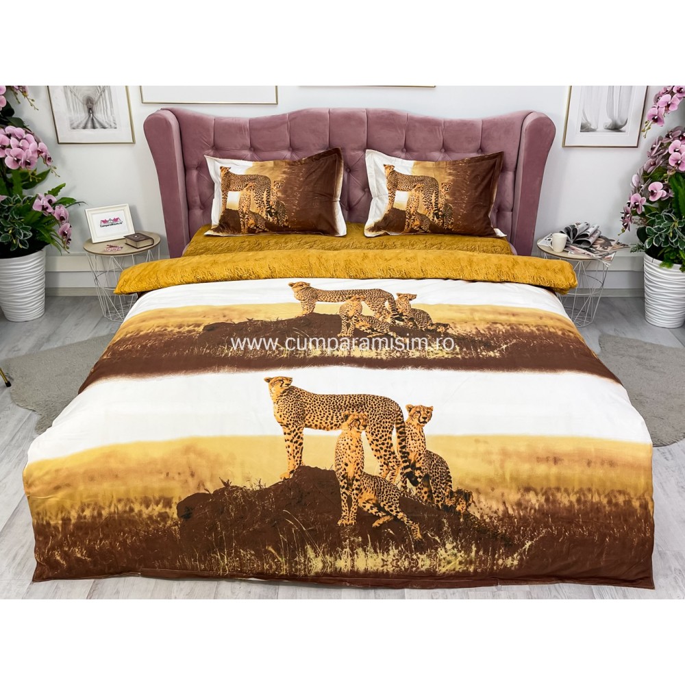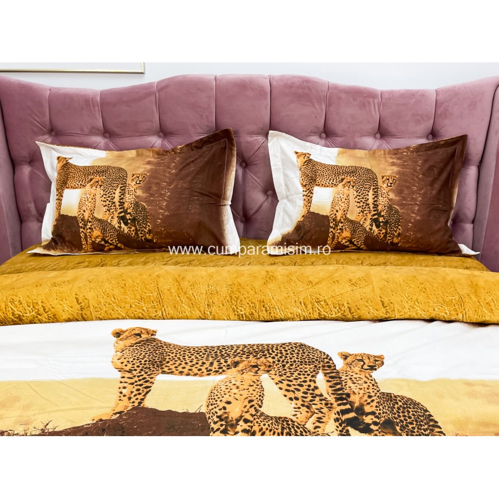 Lenjerie pat dublu, IMPRIMEU 3D DIGITAL, IDENTIC CU POZA, Maro, leoparzi, Johny Home Pucioasa, cod produs: SPR-D-11