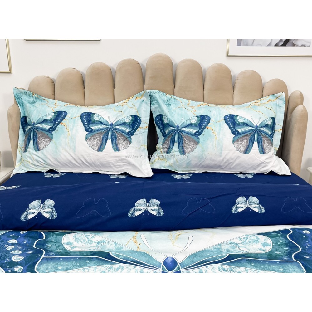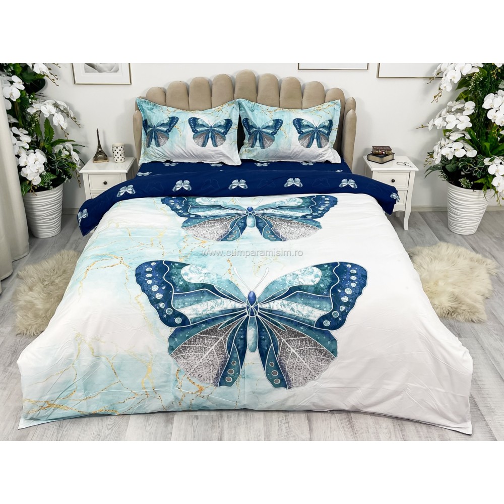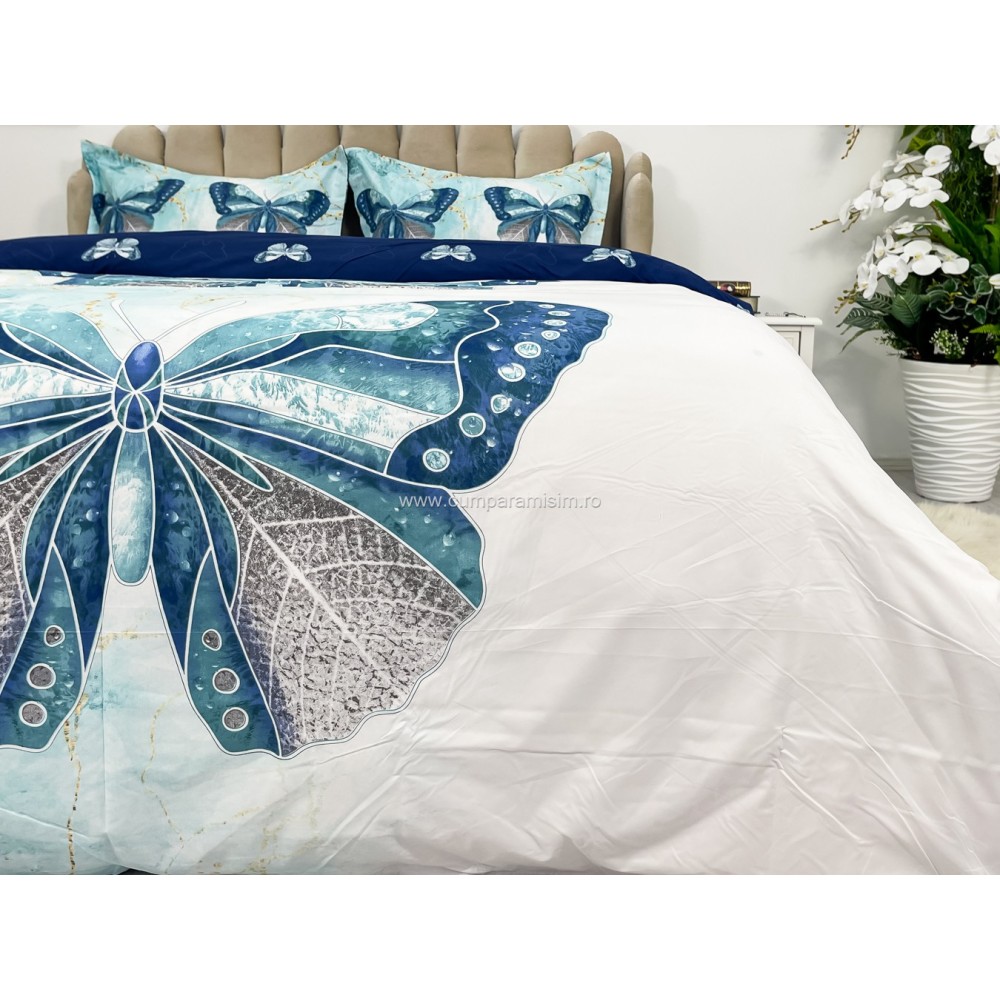 Lenjerie pat dublu, IMPRIMEU 3D DIGITAL, IDENTIC CU POZA, Alb, fluturi, Johny Home Pucioasa, cod produs: SPR-D-22