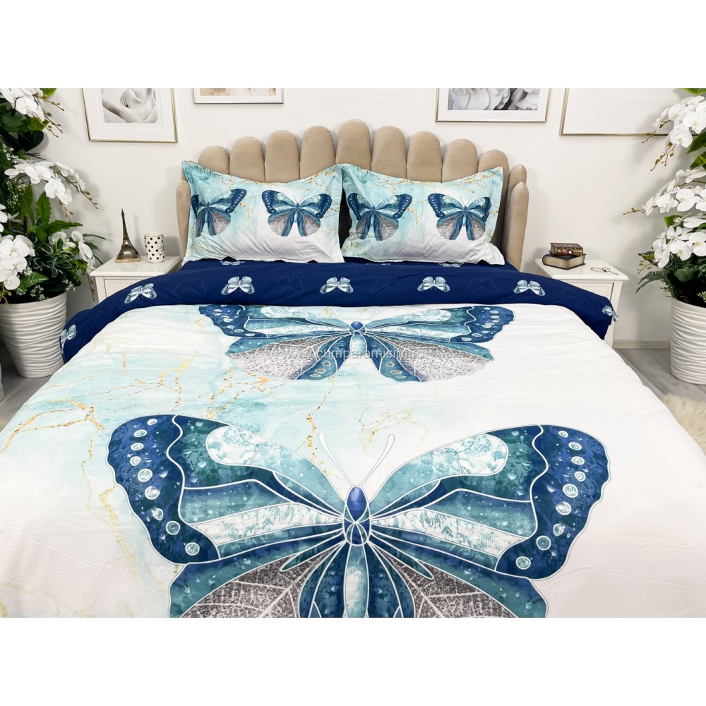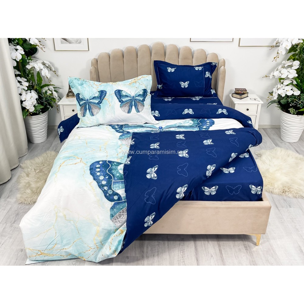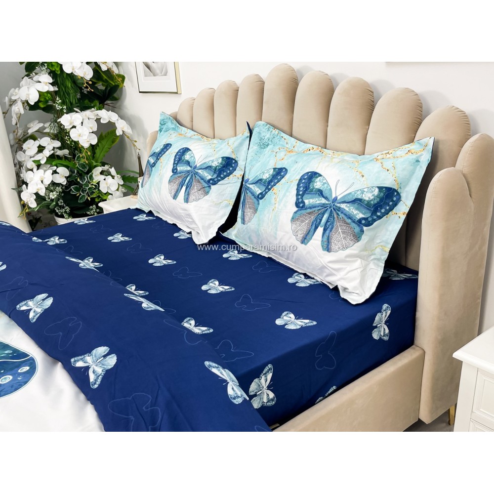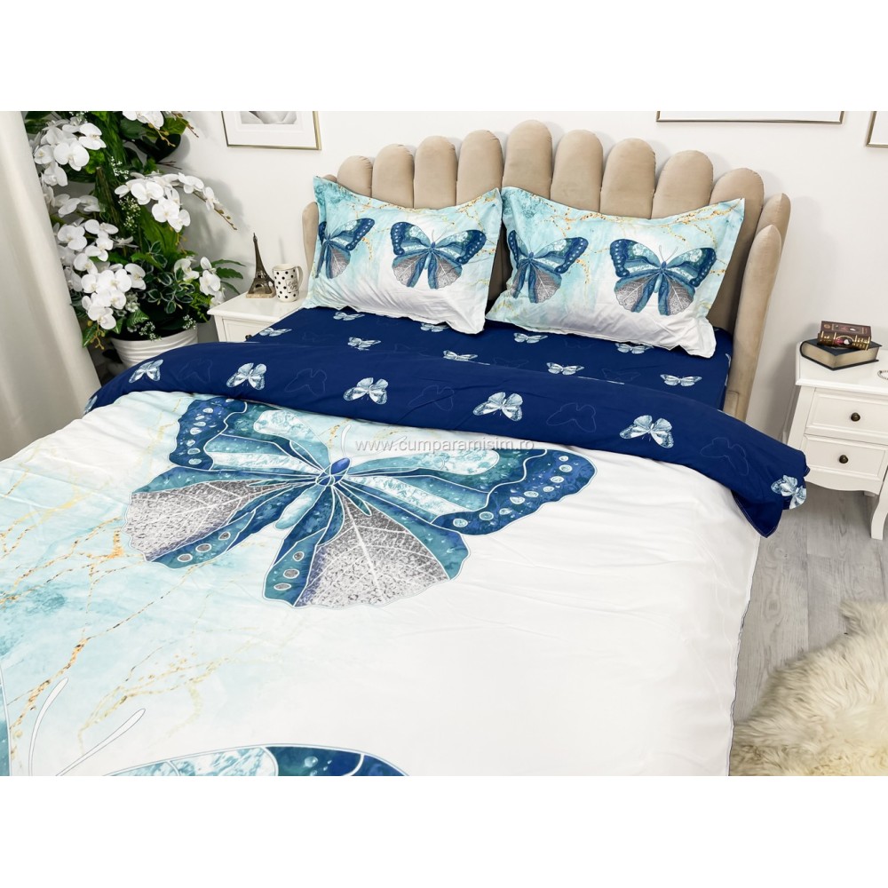 Lenjerie pat dublu, IMPRIMEU 3D DIGITAL, IDENTIC CU POZA, Alb, fluturi, Johny Home Pucioasa, cod produs: SPR-D-22