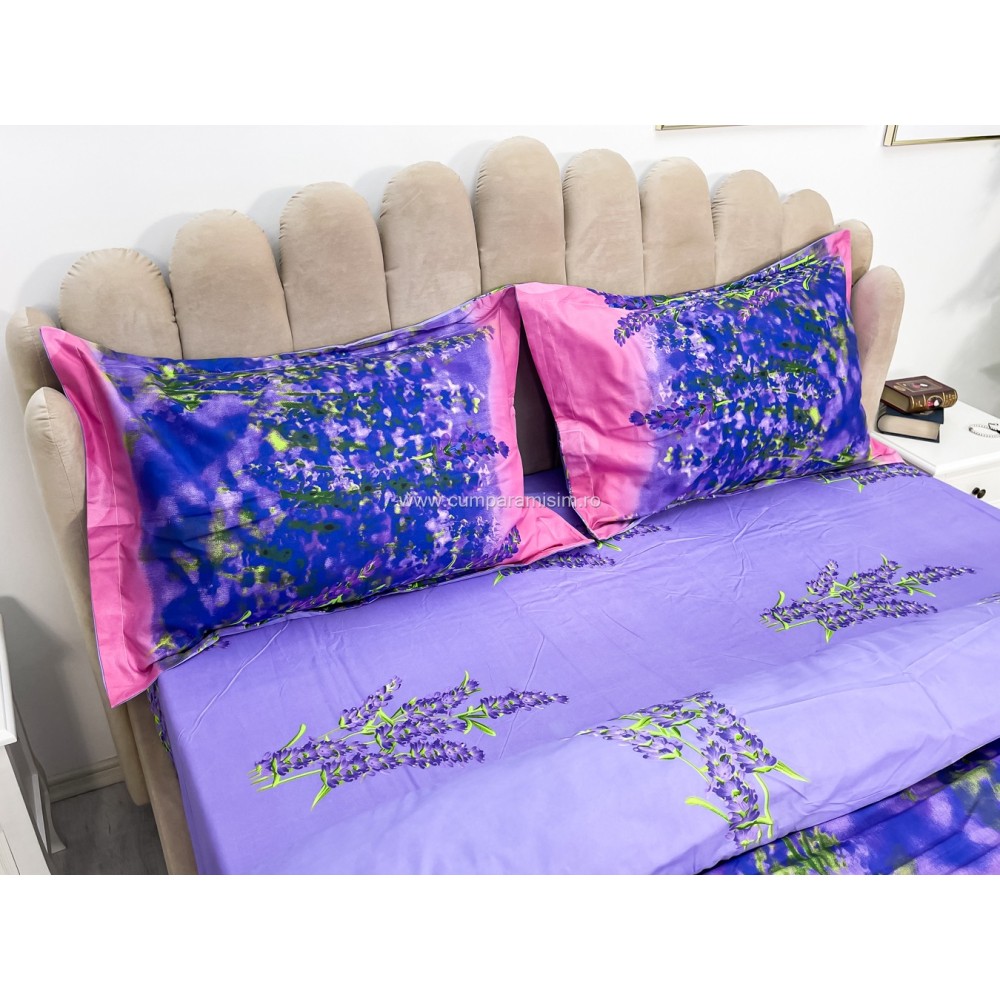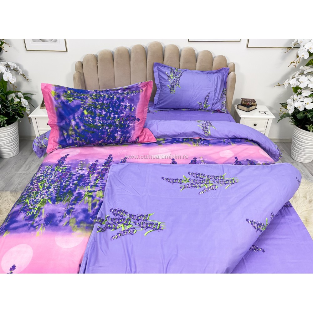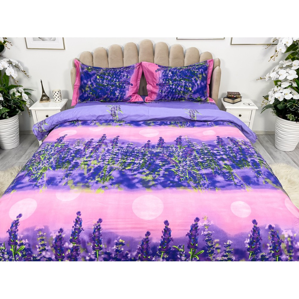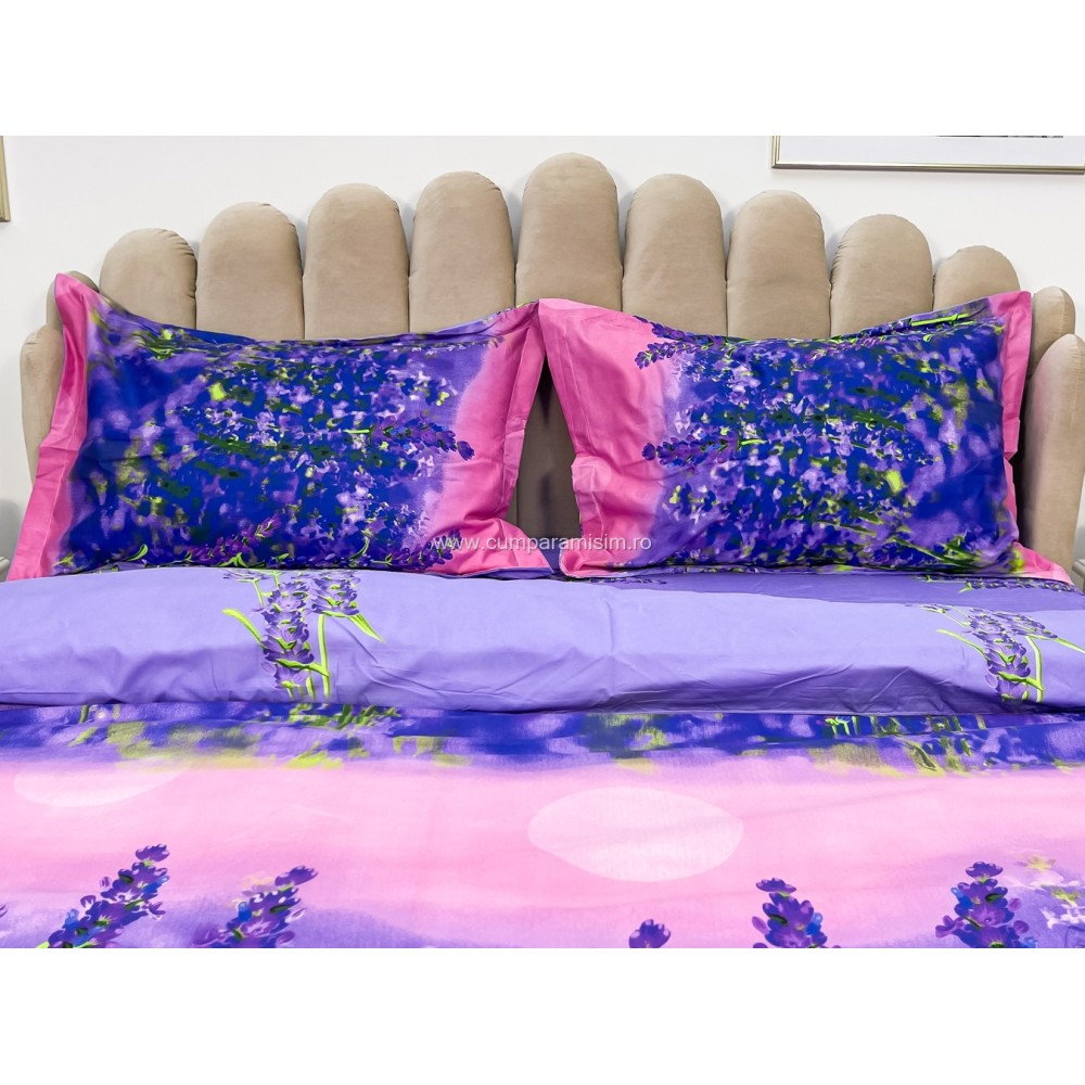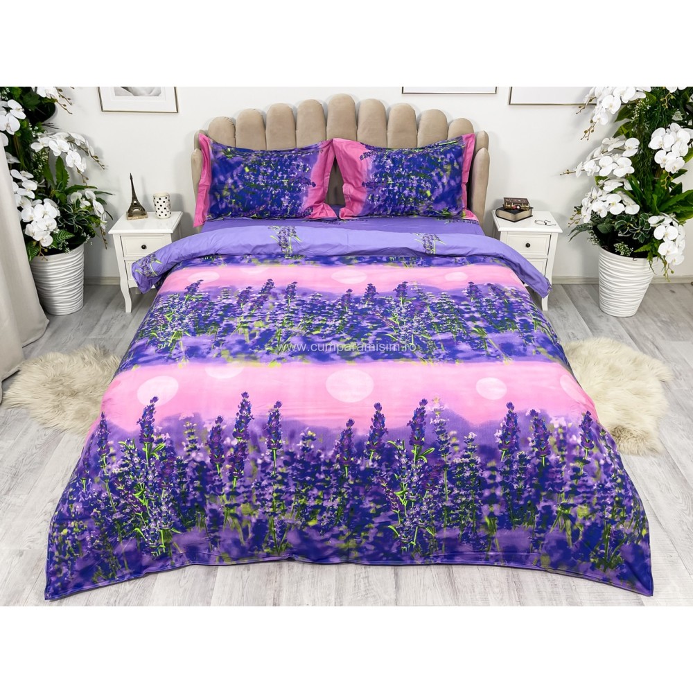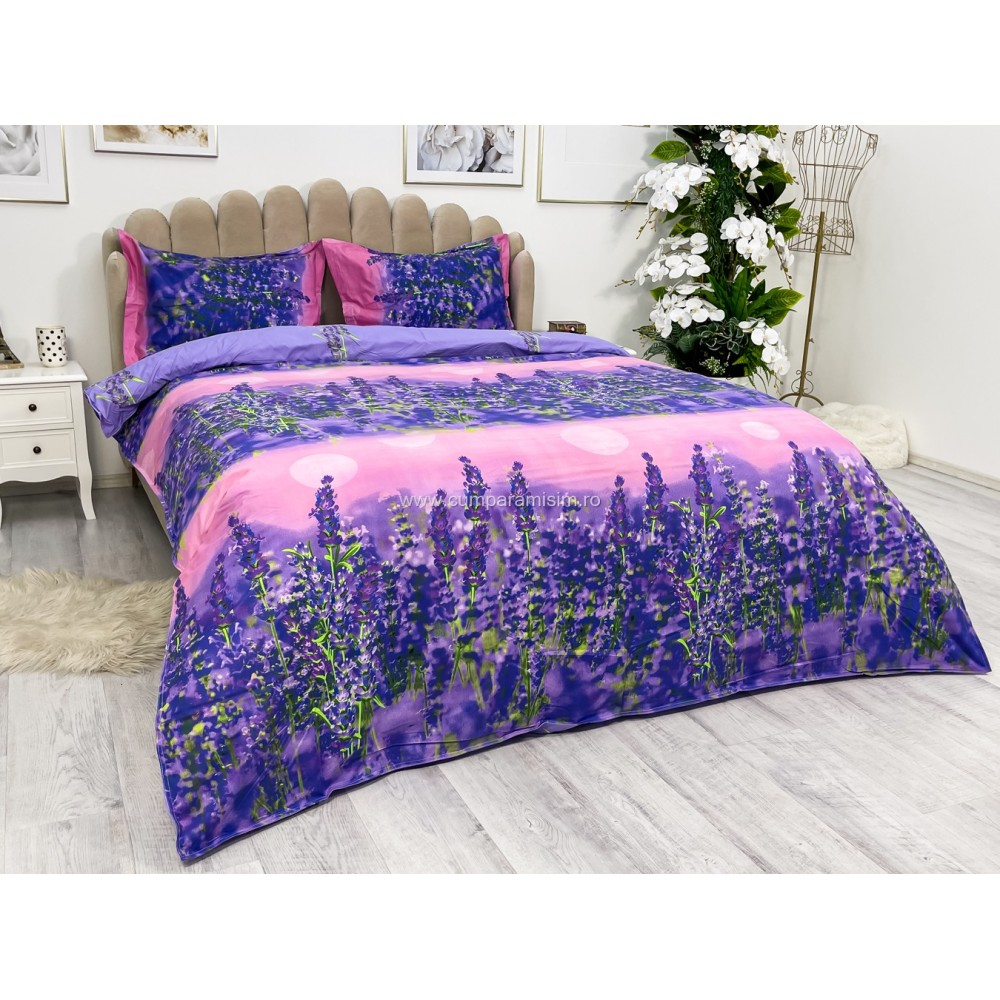 Lenjerie pat dublu, IMPRIMEU 3D DIGITAL, IDENTIC CU POZA, Mov, lavanda, Johny Home Pucioasa, cod produs: SPR-D-08