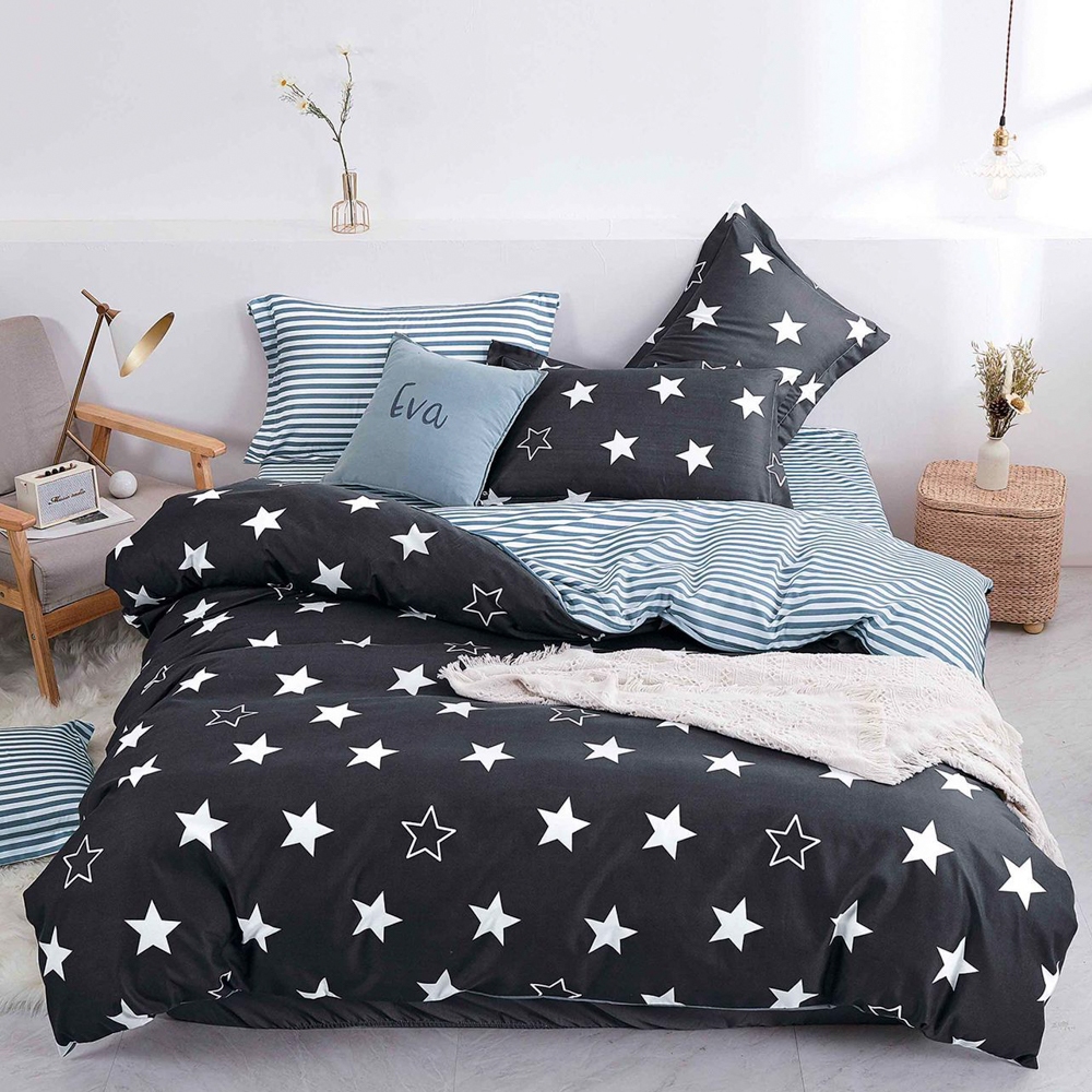 Lenjerie pat dublu cu doua feţe, bumbac satinat, 4 piese, Gri, stelute, Johny Home Pucioasa, cod produs: SPR-A50-673