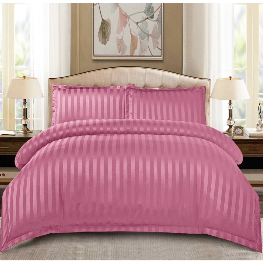 Lenjerie HoReCa, pat dublu, Damasc Finetat Deluxe cu Elastic, 4 piese, Roz ars, Primavara Casa, cod produs: PRM-AT-051