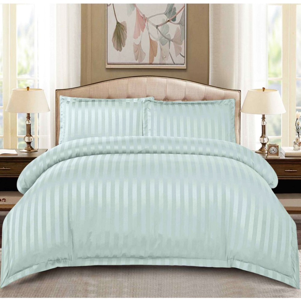 Lenjerie HoReCa, pat dublu, Damasc Finetat Deluxe cu Elastic, 4 piese, Aqua, Primavara Casa, cod produs: PRM-AT-142