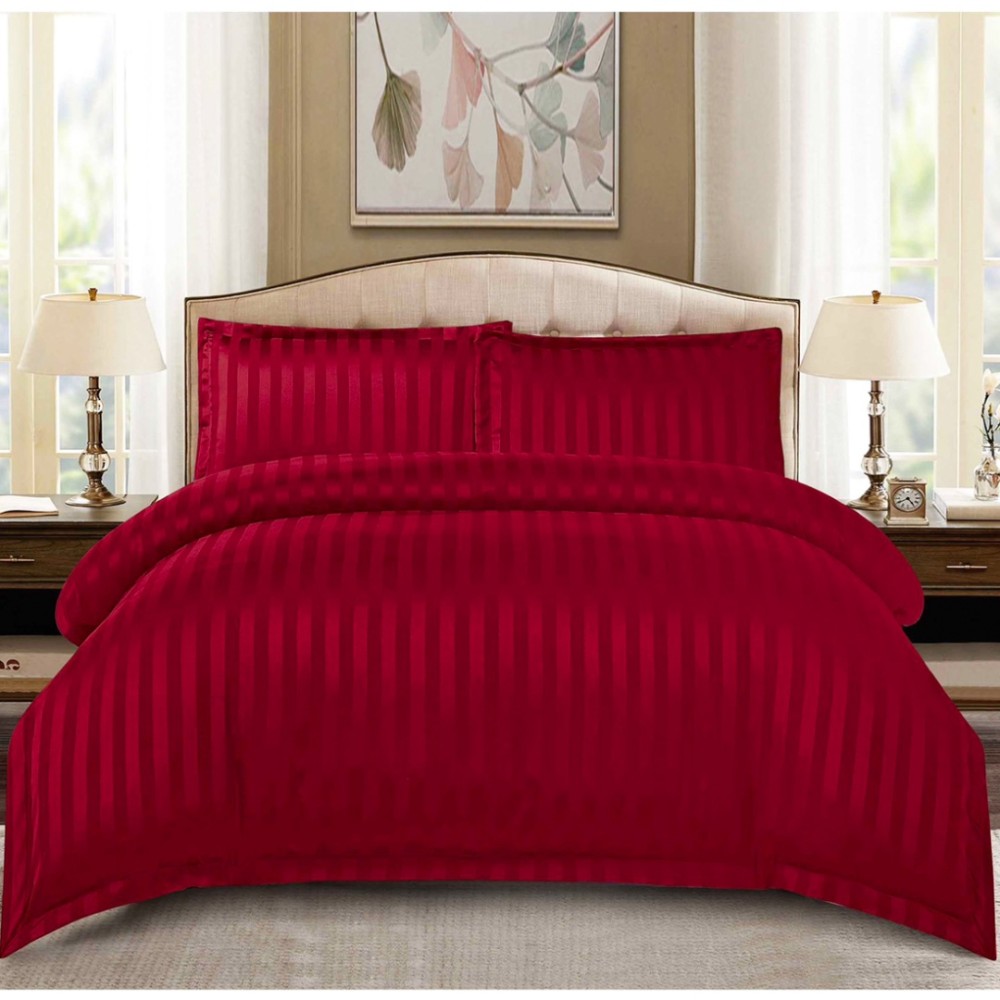 Lenjerie HoReCa, pat dublu, Damasc Finetat Deluxe cu Elastic, 4 piese, Roșu inchis, Primavara Casa, cod produs: PRM-AT-120