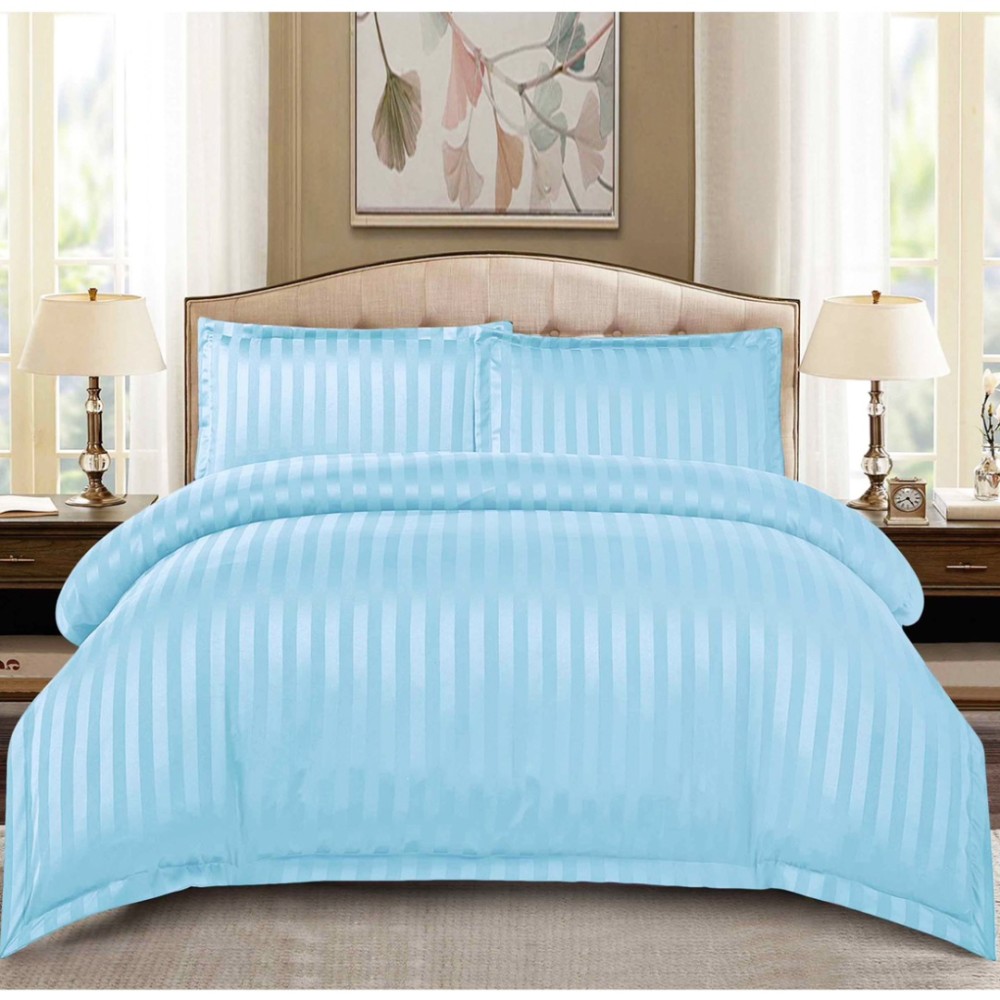Lenjerie HoReCa, pat dublu, Damasc Finetat Deluxe cu Elastic, 4 piese, Bleu, Primavara Casa, cod produs: PRM-AT-128