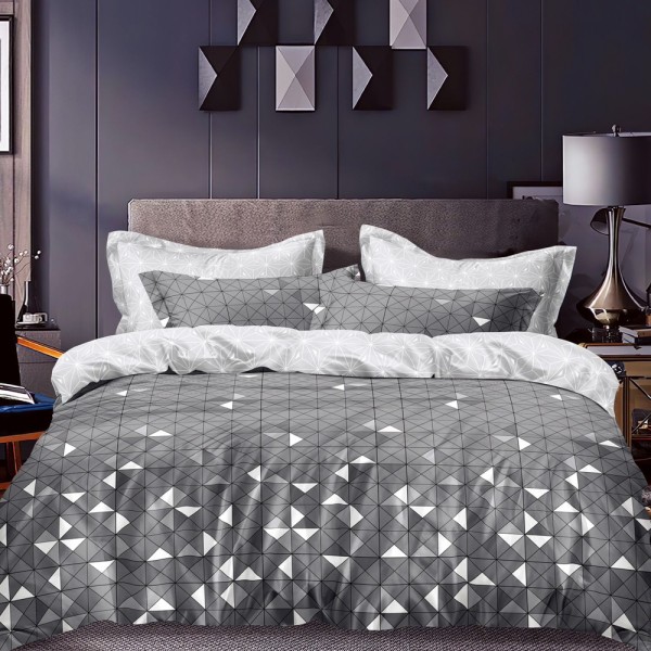 Lenjerie pat dublu cu doua feţe, bumbac satinat, 4 piese, Gri, forme geometrice, Johny Home Pucioasa, cod produs: SPR-A50-561