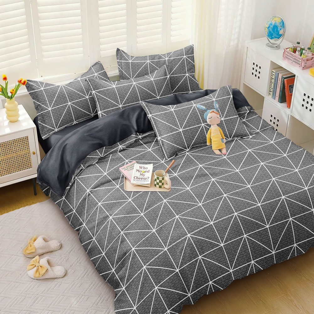 Lenjerie pat dublu cu doua feţe, bumbac satinat, 4 piese, Gri, forme geometrice, Johny Home Pucioasa, cod produs: SPR-A50-687