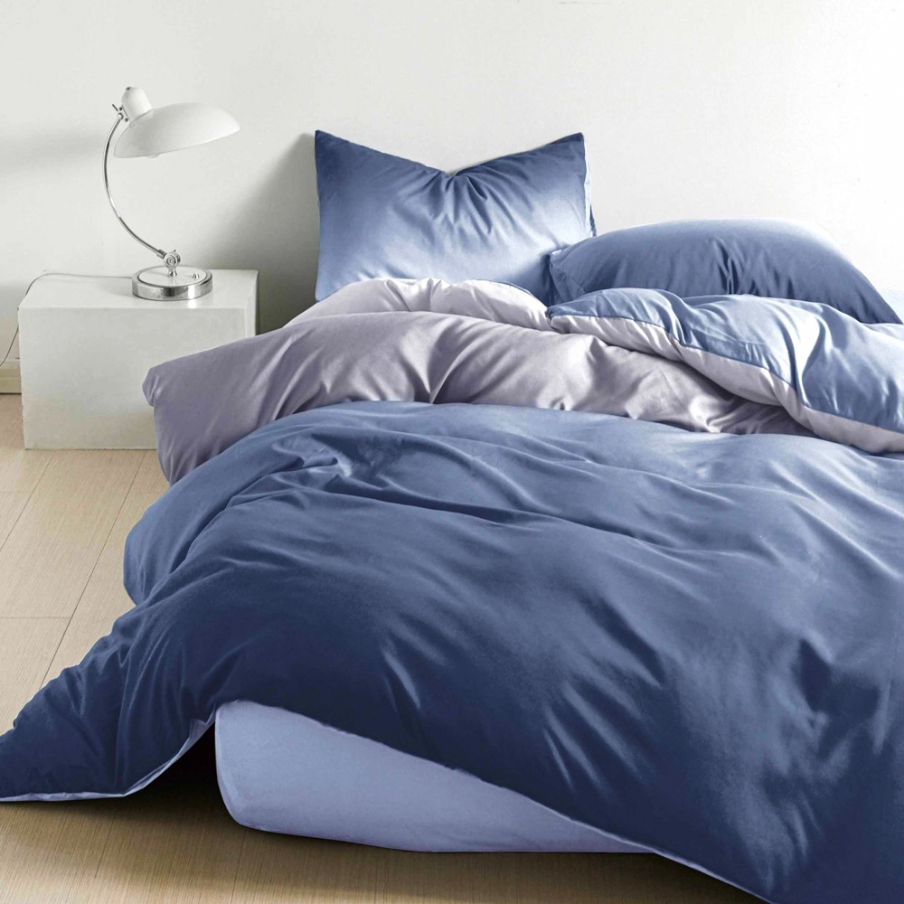 Lenjerie pat dublu, bumbac satinat, cu elastic, Albastru, degrade, Johny Home Pucioasa, cod produs: SPR-E-140