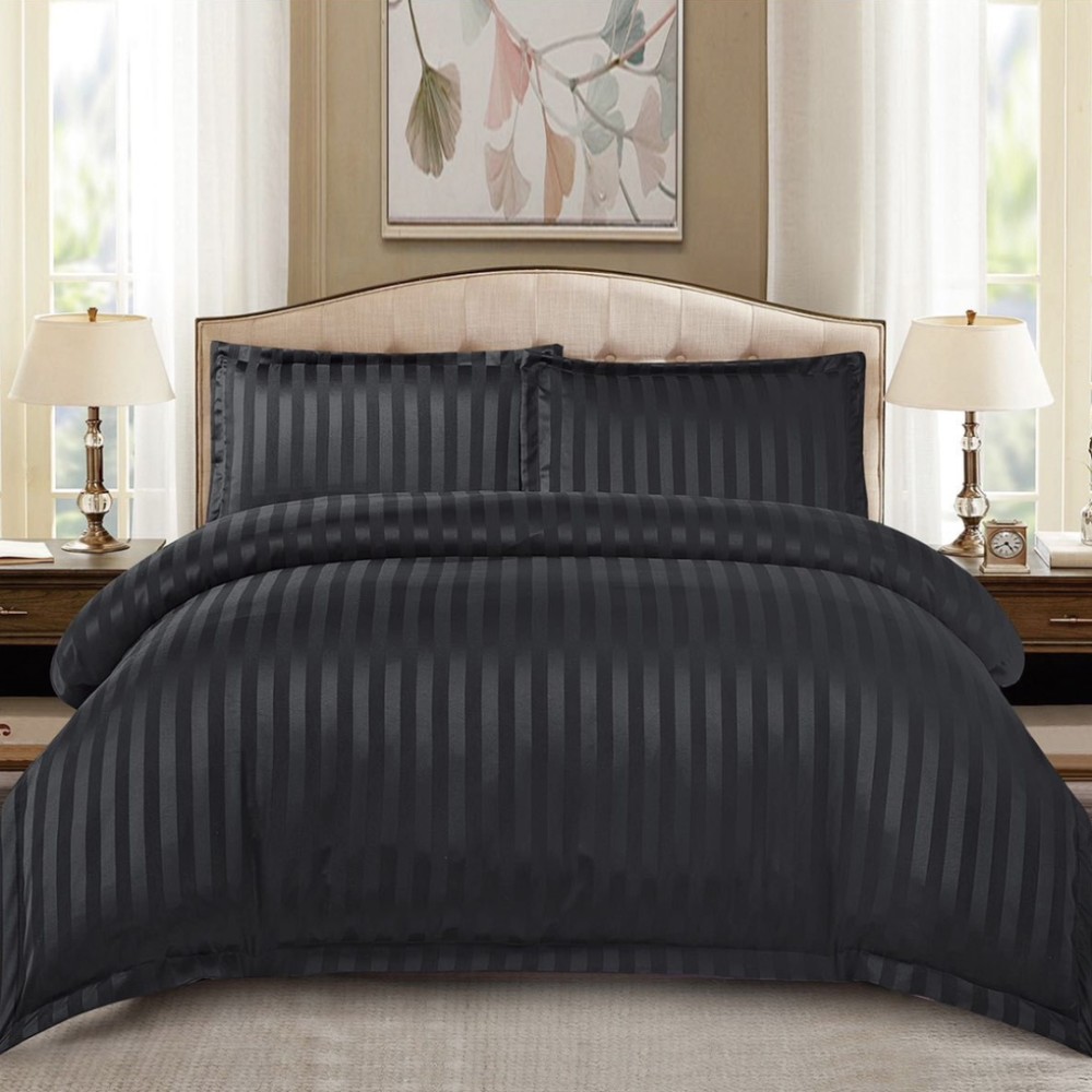 Lenjerie HoReCa, pat dublu, Damasc Finetat Deluxe cu Elastic, 4 piese, Negru, Primavara Casa, cod produs: PRM-AT-131