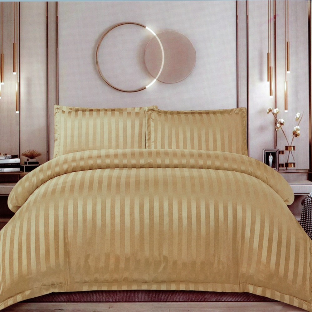Lenjerie de Pat Dublu, HoReCa, 4 Piese din Damasc Finetat - Lux, Confort și Întreținere Ușoară, Fără Călcare, Bej inchis, Veluxio Home, cod produs: ELN-DM25