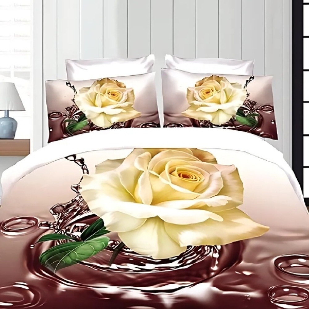 Lenjerie pat dublu, 4 piese, IMPRIMEU 3D Multiplicat Multiplicat, Microfibra, Bej, flori, Johny Home Pucioasa, cod produs: SPR-B-152