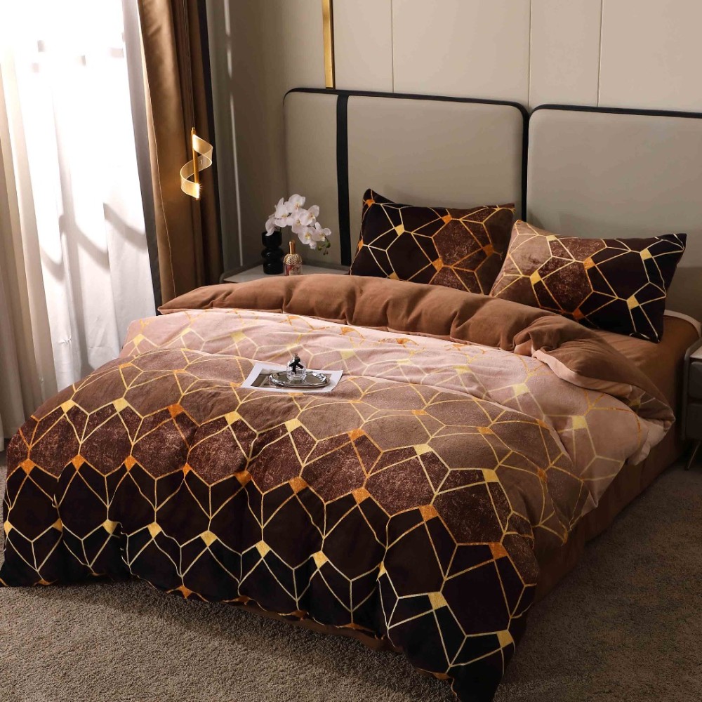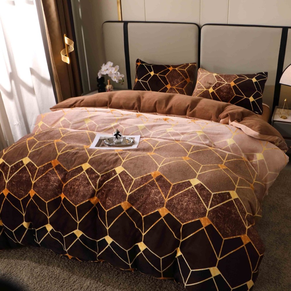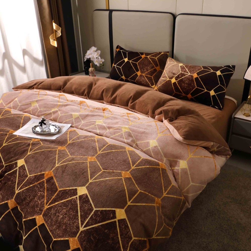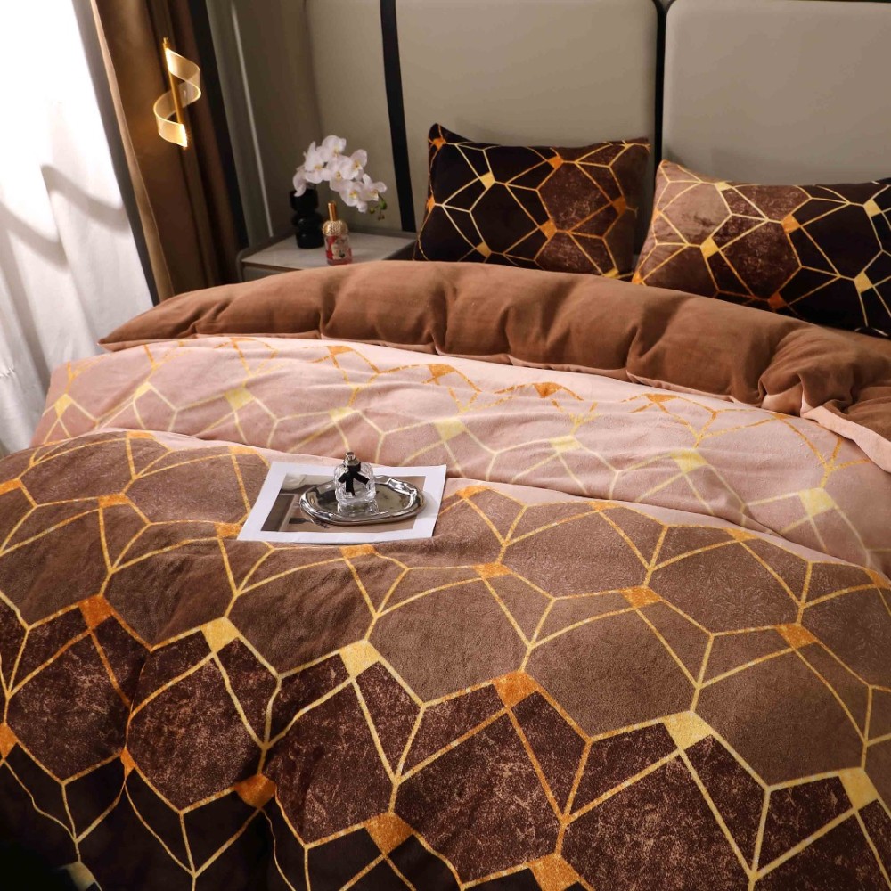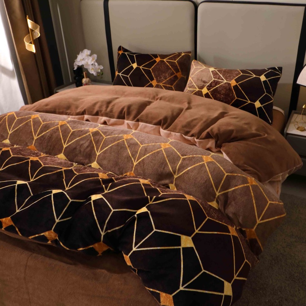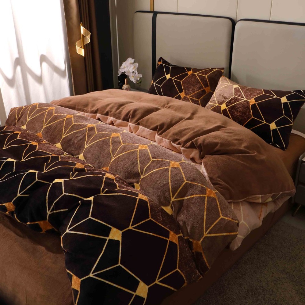 Lenjerie pat dublu, Super Pufoasa COCOLINO, 4 piese, Maro, Forme Geometrice, cod produs: BCC-LC412