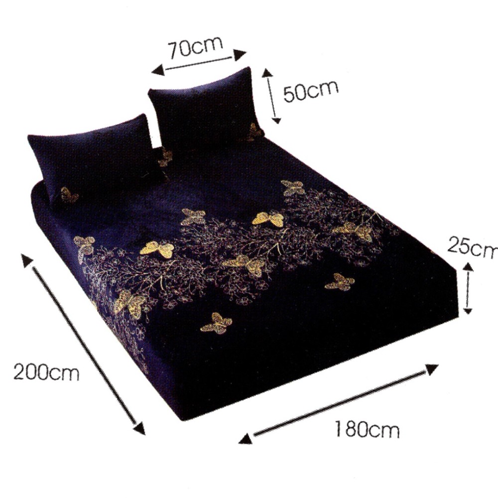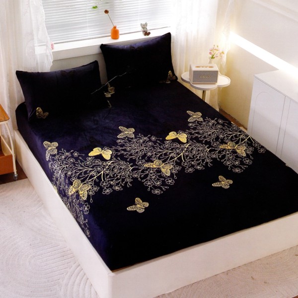 Cearșaf cu Elastic Cocolino 180x200x25 cm – Set cu 2 Fețe de Pernă, Gros și Pufos, Calitate Premium pentru Confort și Eleganță, Bleumarin, Fluturi, Super Design Pucioasa, cod produs: BCC-HCE32