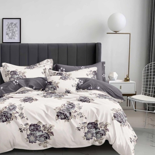 Lenjerie Pat Dublu, FINET, 6 piese, Gri, flori, East Romania, cod produs: EST-FN-232