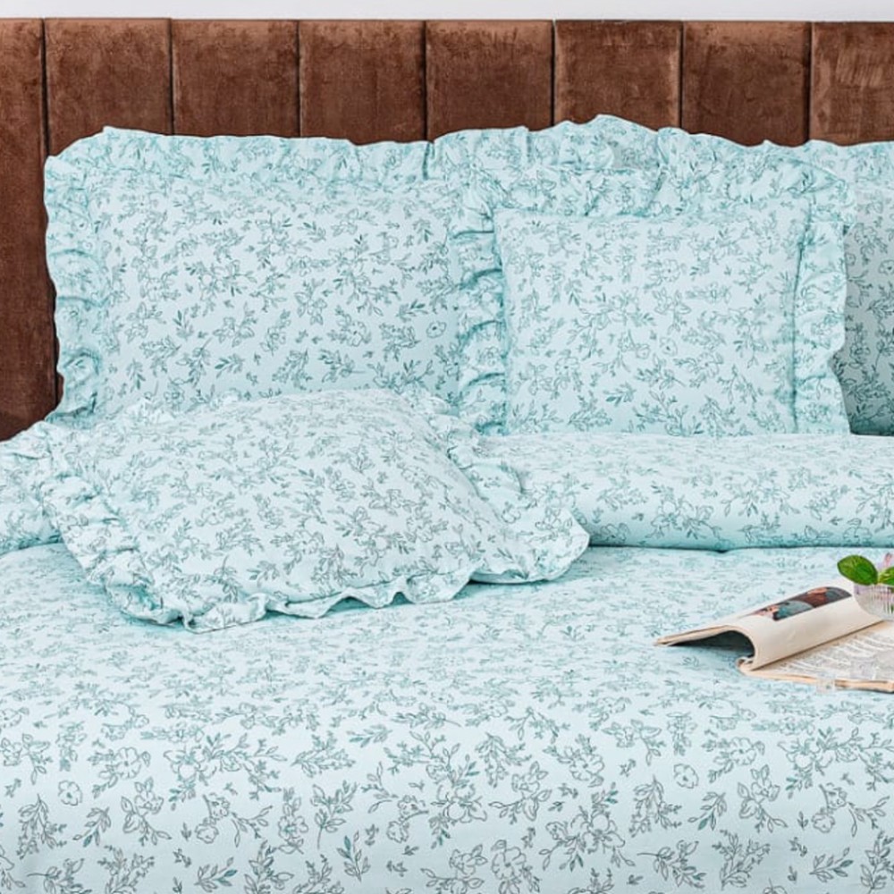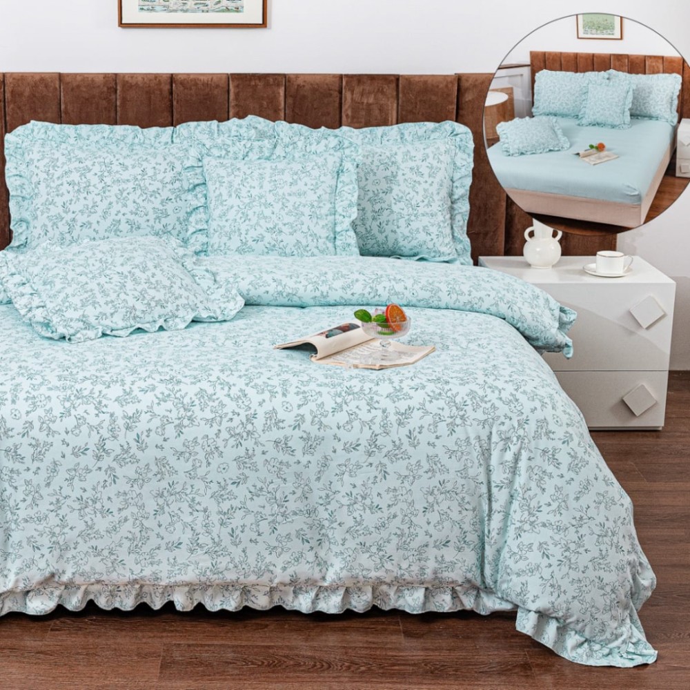 Lenjerie de Pat 6 Piese din Bumbac Finet cu Volănașe – Eleganță și Răsfăț pentru Somnul Tău