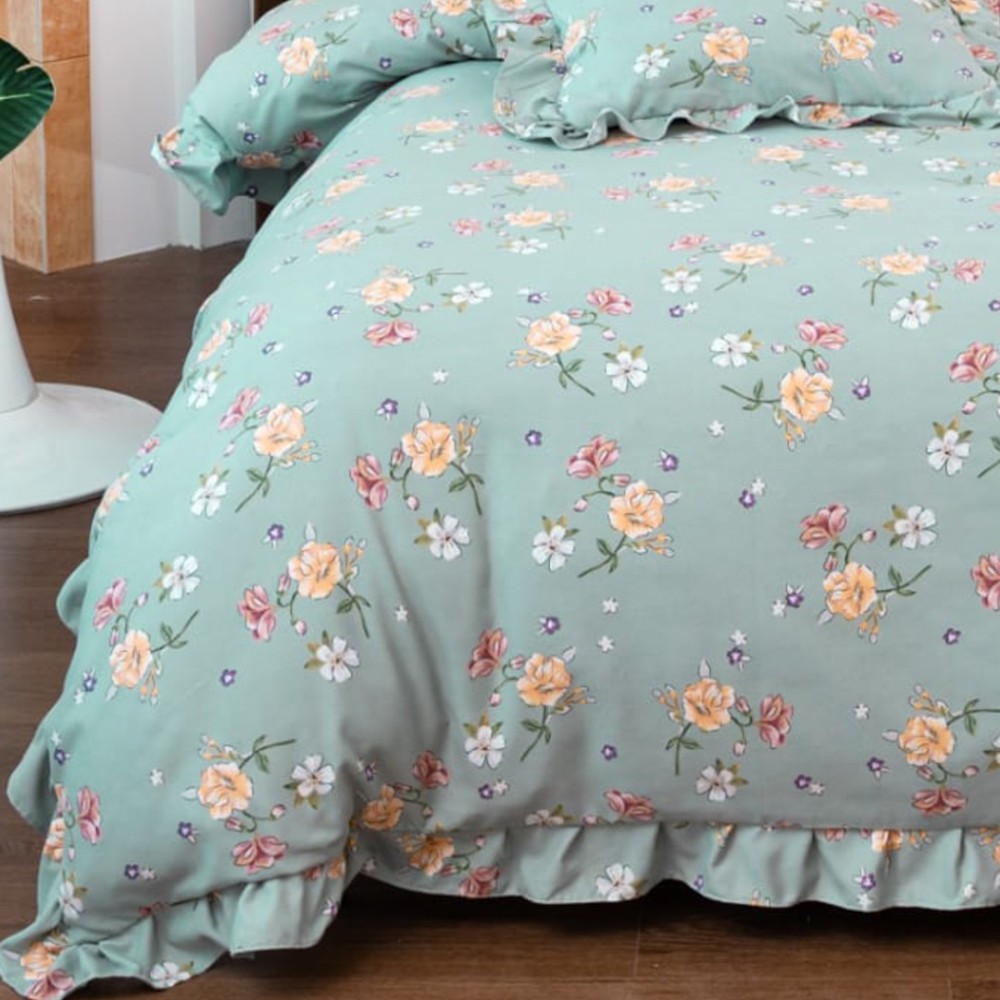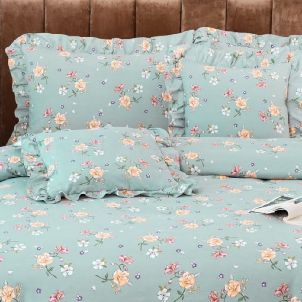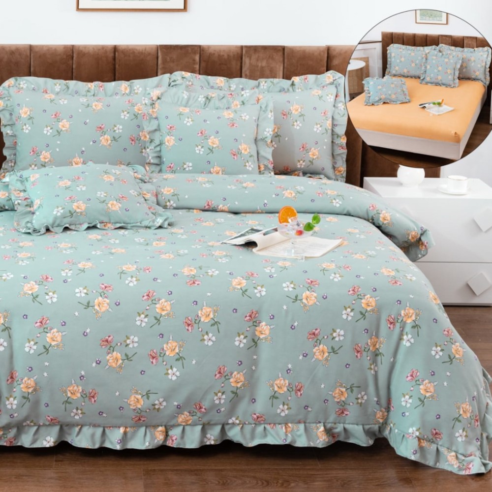 Lenjerie de Pat 6 Piese din Bumbac Finet cu Volănașe – Eleganță și Răsfăț pentru Somnul Tău