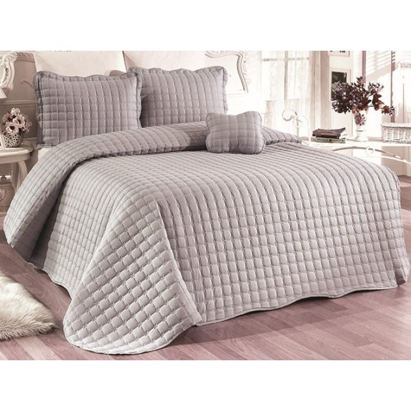 Cuvertura Brodata pat dublu cu 3 fete de perna, gri, Casa Sabry, cod produs: SBR-CVM-02