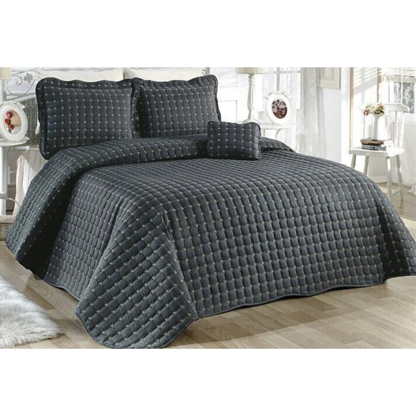 Cuvertura Brodata pat dublu cu 3 fete de perna, gri antracit , Casa Sabry, cod produs: SBR-CVM-11