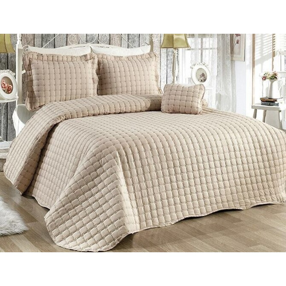 Cuvertura Brodata pat dublu cu 3 fete de perna, bej, Casa Sabry, cod produs: SBR-CVM-21