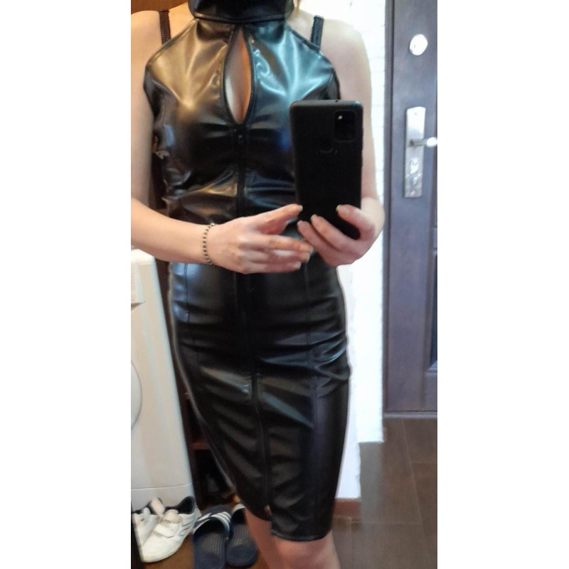 Rochie din piele ecologica, tip corset, cu fermoar pe fata.