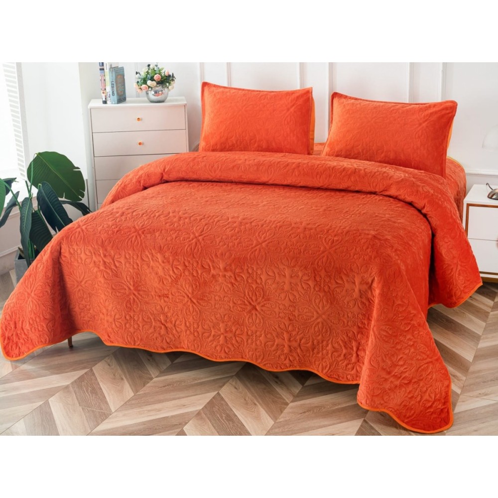 Cuvertura pat dublu, 3 piese, Catifea Matlasata, 230x250cm, Caramiziu, Alti producatori, cod produs: CVP403